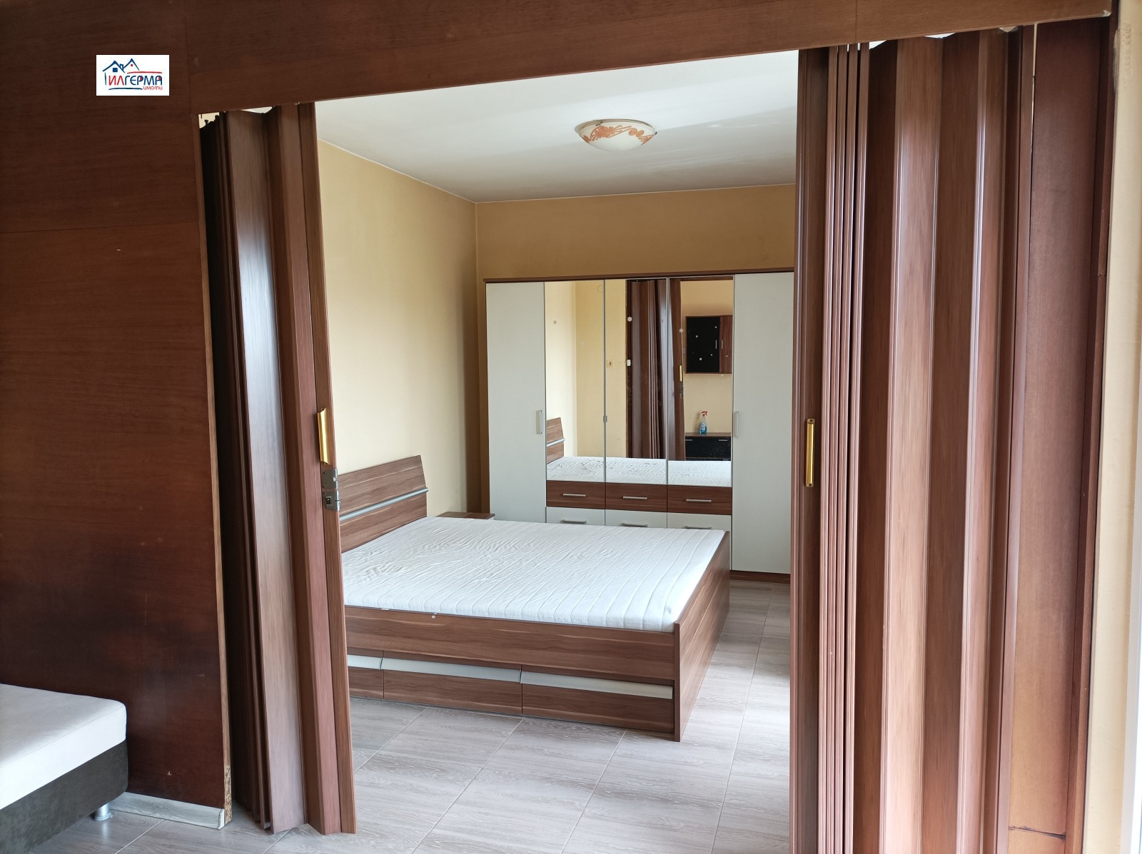 СПАЛНЯ: гранитогр. плочки, латекс, спалня с подматрачна рамка и матрак, нощни щкафчета, 5-крилен гардероб, чугунен отопл. радиатор, сгъваема врата.