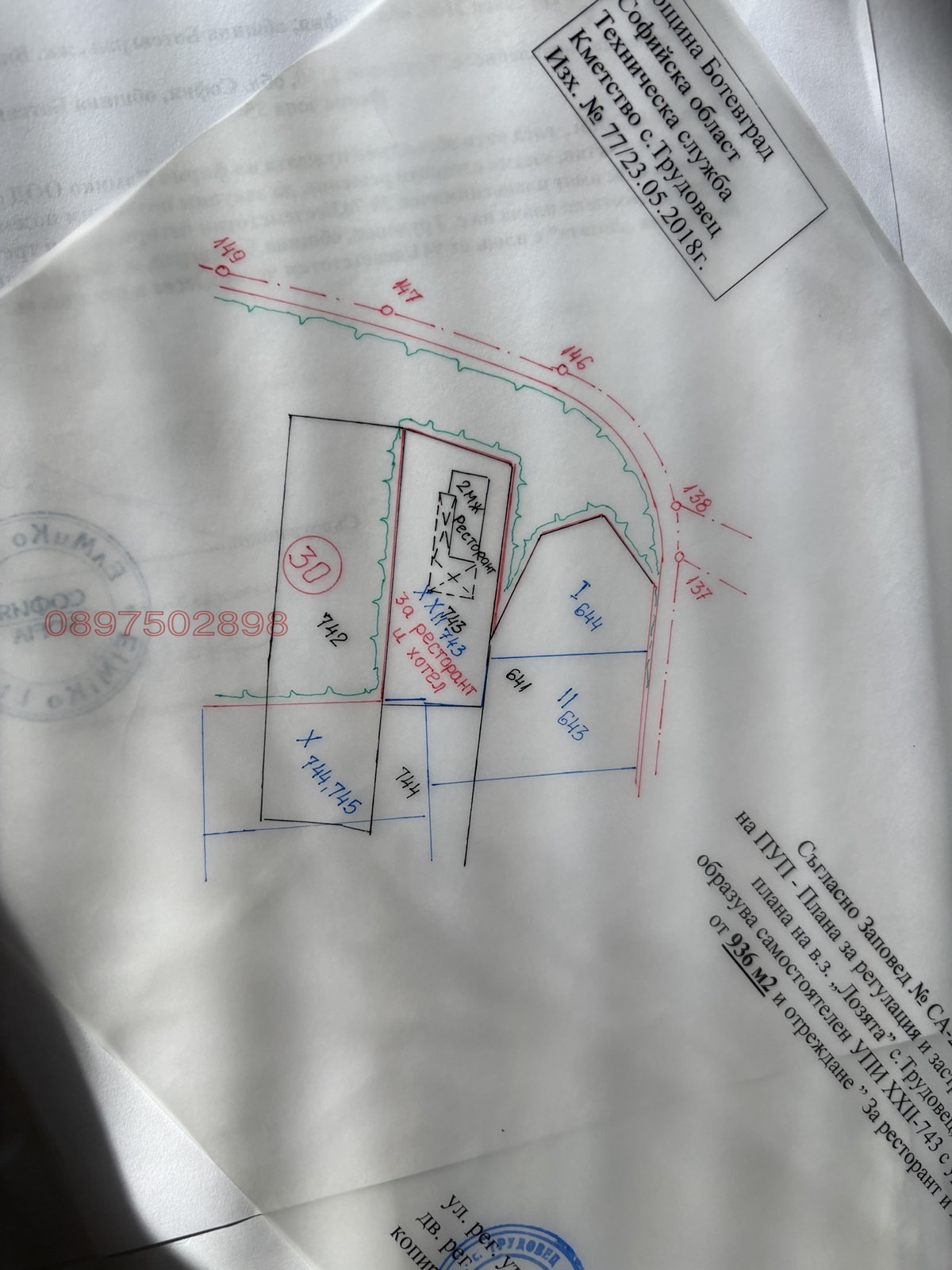 Имотът е с разгъната застроена площ от около 220 кв.м, разпределена на два етажа, и двор над 900 кв.м.