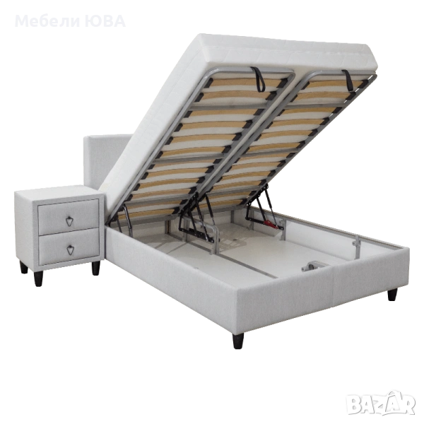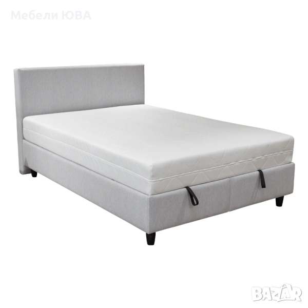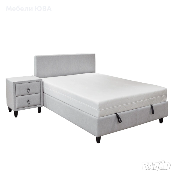 Тапицирана спалня с матрак, с размери 160 х 200 см и височина 22 см. Той е умерено мек и съставен от 7-зонов пакет от покет пружини, вложка от вълна и памук и пухена подложка. Моделът притежава амортисьор, с който безпроблемно може да вдигнете матрака и да приберете за съхранение вашите вещи в раклата, която се намира под него. За максимална издръжливост спалнята има подсилена метална рамка.
