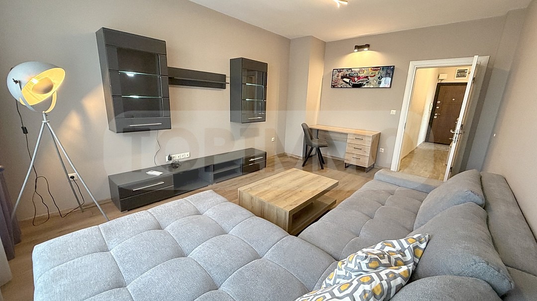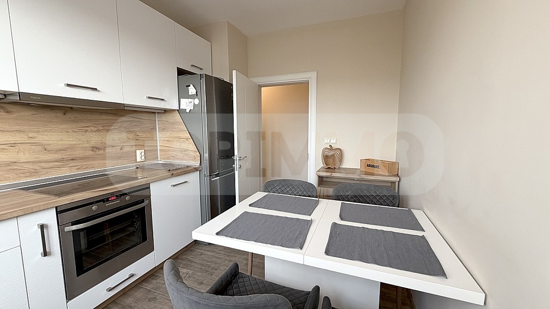 Апартаментът разполага с дневна, спалня, отделна кухня, баня с тоалетна, килер и тераса. Кухнята е напълно оборудвана, дневната е обзаведена с мека мебел, а спалнята е функционална и уютна.