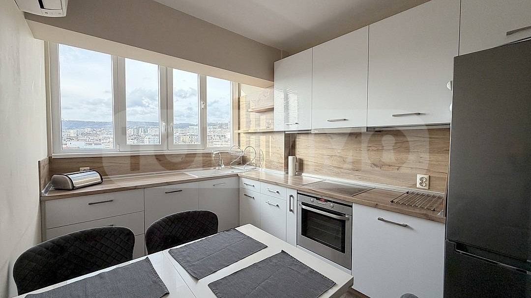 Имотът е топъл, с външна изолация и отлично естествено осветление. Намира се на висок етаж, което осигурява простор и приятна гледка към околността.