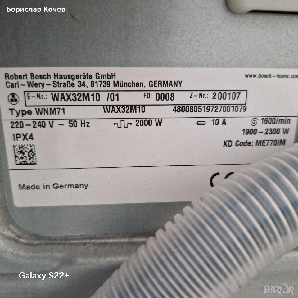 Пералня 10кг. BOSCH Serie8 → Обява 54200387