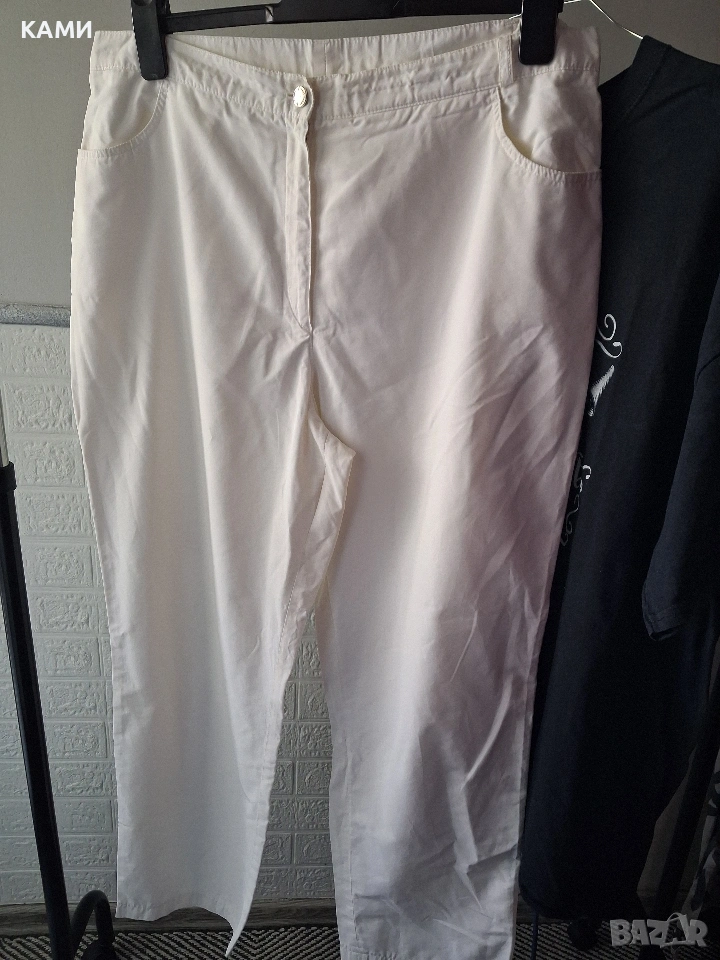 Панталон размер 46 -като нов е. Бял , тънка лятна материя. ЦЕНА 3€ Долнище от трико ,малиненпцвят(не е точно бордо), като ново е , ценах4€ Тениска 2ХЛ - 4€