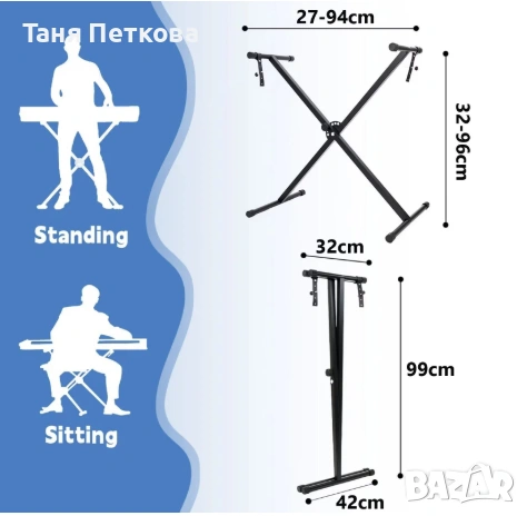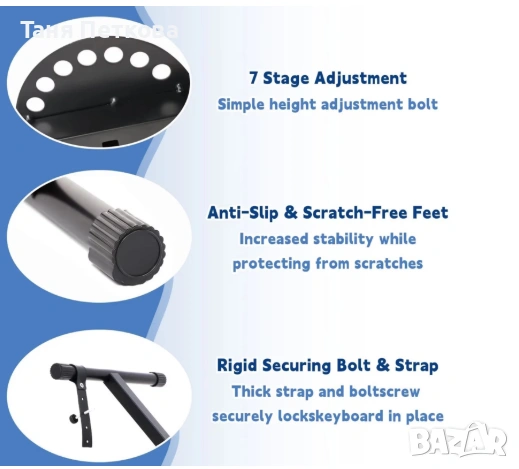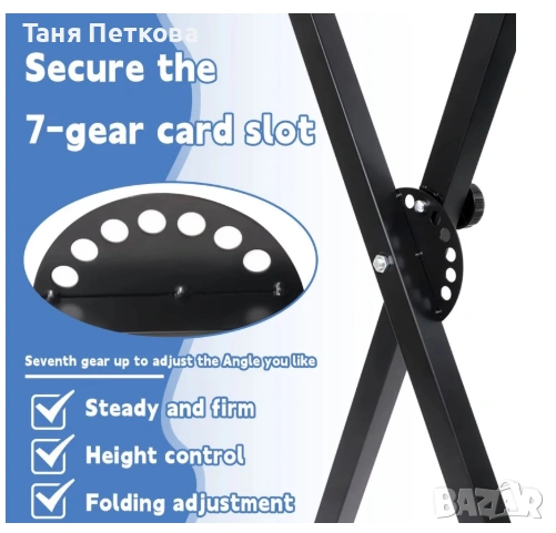 ПЕРФЕКТНО ПРЕНОСИМО: Има сгъваем дизайн, позволяващ бързо и безпроблемно транспортиране. Независимо дали отивате на концерт, репетиция или урок по музика, тази стойка се сгъва и разгъва лесно за перфектна настройка, където и да отидете.