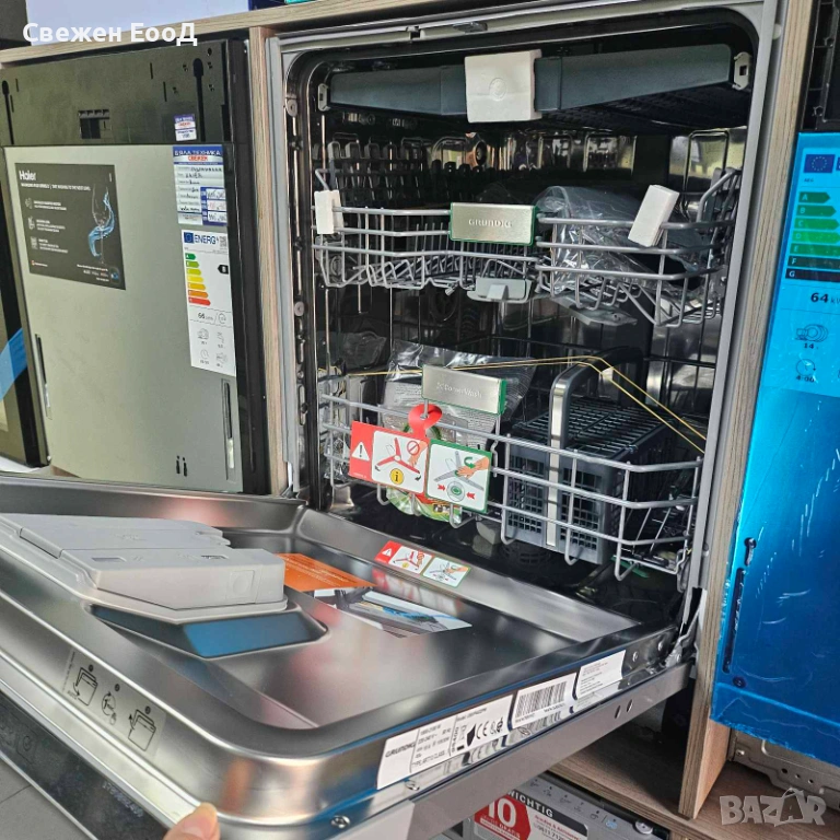 CornerWash Spray технология: Разпръскващото рамо CornerWash на Grundig достига места, които иначе са недостъпни. Нашите съдомиялни машини CornerWash почистват по различен начин от конвенционалните съдомиялни машини, които следват кръгови траектории. Разпръскващите рамена CornerWash следват иновативен, правоъгълен път и разполагат с 3-частно разпръскващо рамо, което достига до всеки ъгъл.
