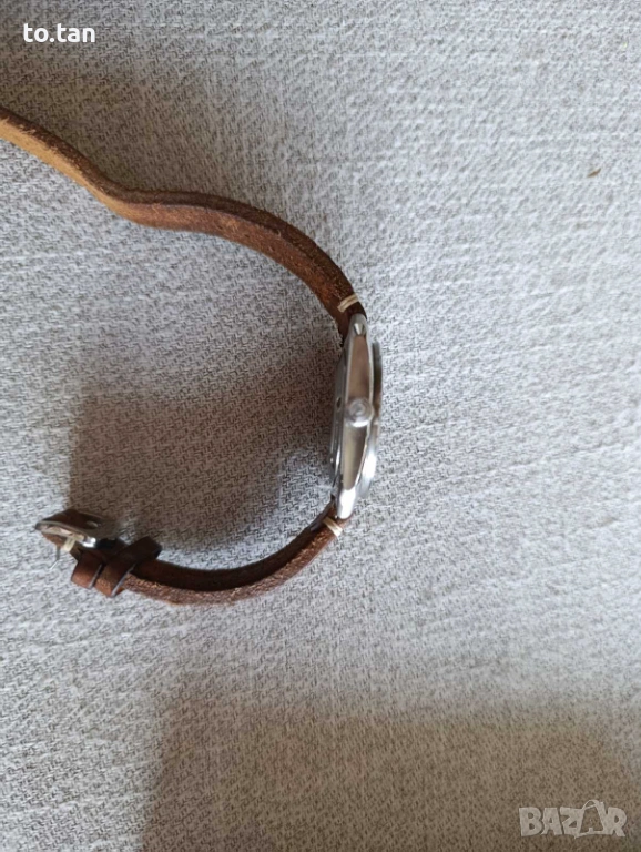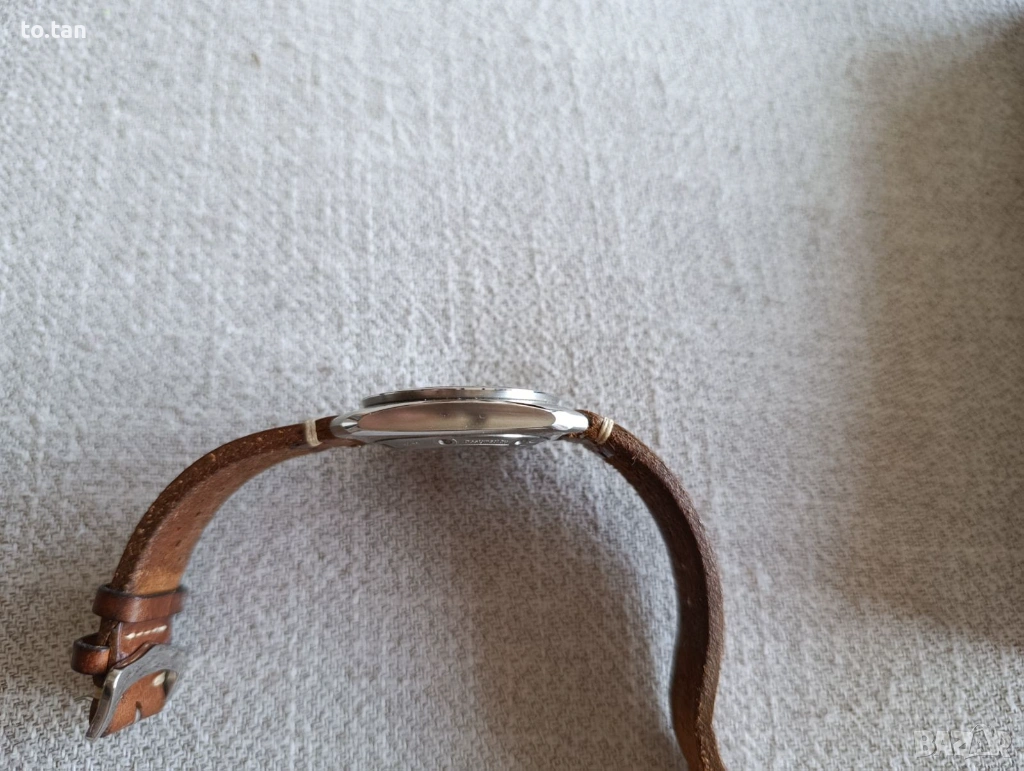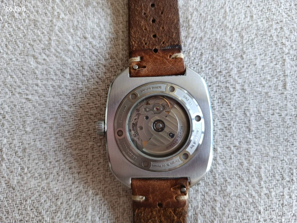 Каишка: Кафява кожена каишка в стил „racing“ (перфорирана), която перфектно допълва винтидж излъчването.