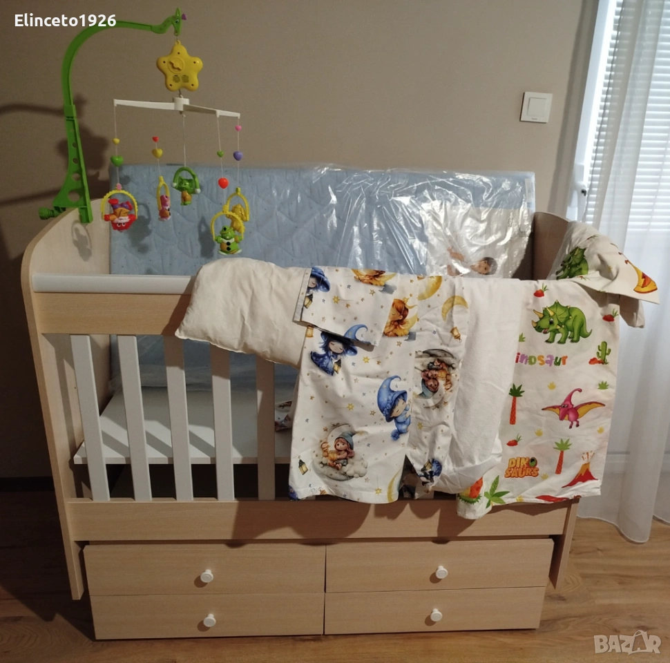 НОВИ : Протектор за матрак.2 комплекта за кошара с долен чаршаф,торби за юрган,калъфки и възглавничка 1 бр.