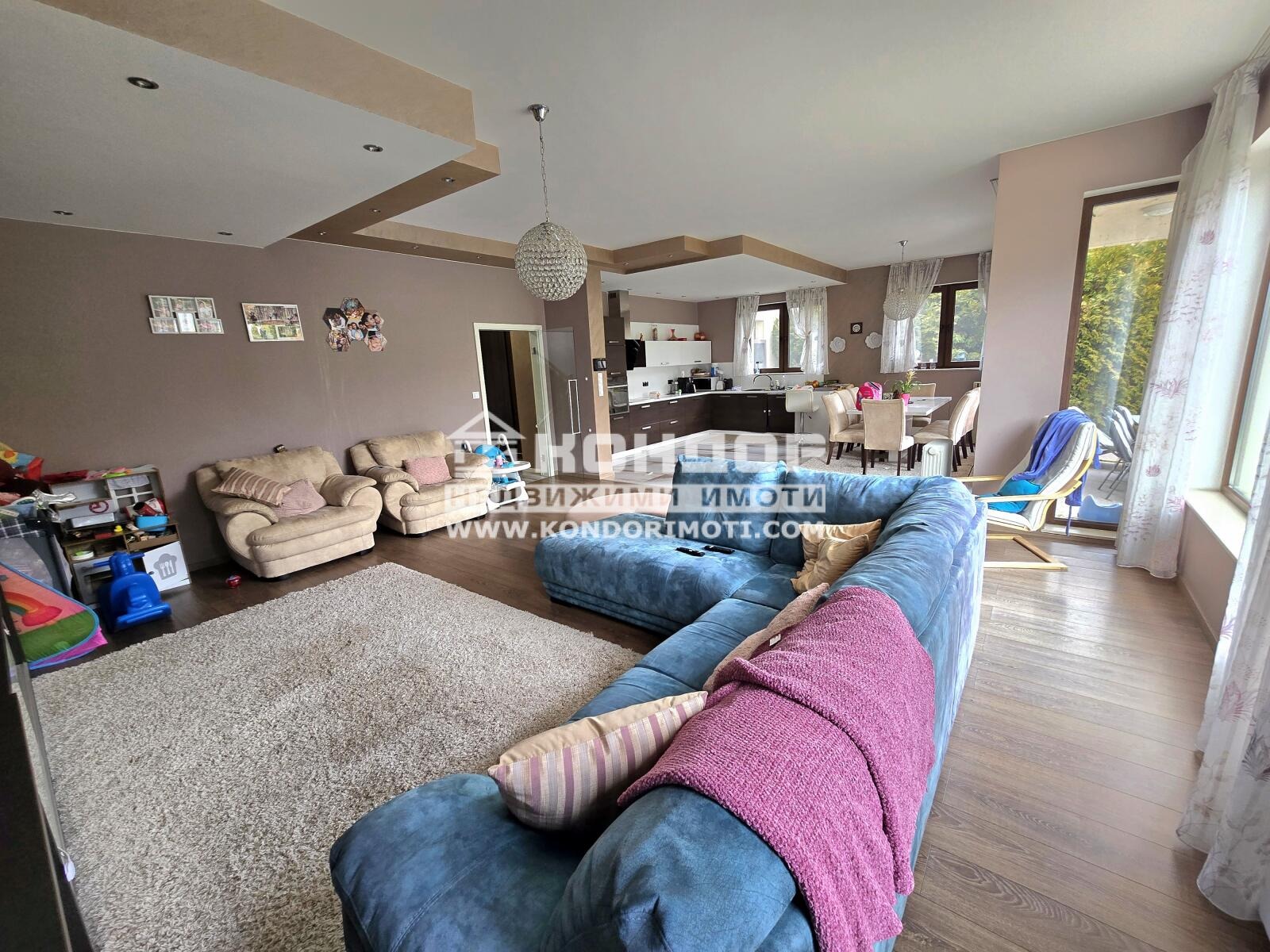 Оферта 69255 - ЛУКСОЗНО ОБЗАВЕДЕНА !!! ЧЕТИРИ СПАЛНИ !!! ГОЛЯМ ГАРАЖ !!!Предлагаме на вашето внимание една превъзходна къща за продажба, разположена в един от най-красивите и зелени райони на Пловдив а именно Гребна база. Локацията е сред най-предпочитаните в града благодарение на близостта си до парк Отдих и култура , спортните алеи на Гребния канал, елитни училища, детски градини и бърз достъп до центъра . Районът предлага сигурност, тишина и висок стандарт на живот. Къщата е с разгърната застроена площ от 420 кв.м, изпълнена с много простор и функционалност. Дневната зона впечатлява с мащаб голяма всекидневна, комфортен кът за релакс, трапезарна част и отлично разпределена кухня, осветена от естествена светлина . Къщата разполага с четири самостоятелни спални със собствени бани, осигуряващи пълен комфорт за голямо семейство .В подземното ниво са разположени няколко помещения: перално помещение, многофункционално помещение, подходящо за фитнес зона, хоби стая или склад . Допълнително имотът предлага просторен гараж, лесен достъп и топла врузка към къщата . Дворната част е едно от най-големите предимства, като в нея има широка веранда, идеална за отдих и събирания, както и оборудвана барбекю зона, която завършва усещането за пълноценен дом. Дворът позволява индивидуално озеленяване, детски кът или градина според нуждите на бъдещите собственици !!!