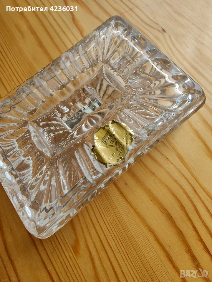 Стара кристална BMFN кутия за цигари или пепелник, средата или началото на 20век.