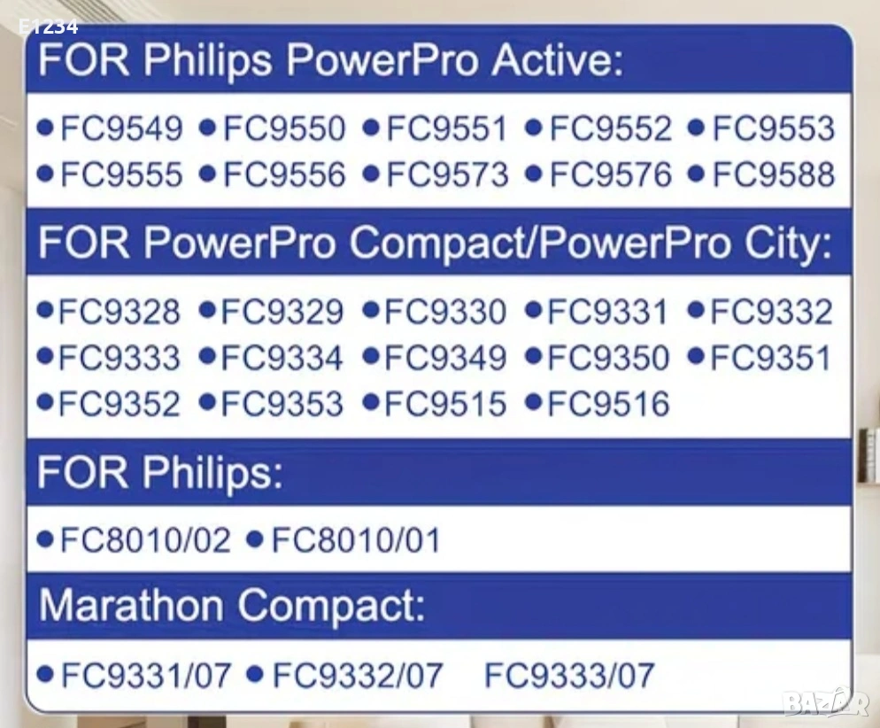 Подходящ за прахосмукачки: Philips FC 8010 - комплект филтри PHILIPS FC 9331 PowerPro City - комплект филтри PHILIPS FC 9332 PowerPro City - комплект филтри PHILIPS FC 9332 PowerPro City - комплект филтри Philips FC 9352 PowerPro City - комплект филтри Philips FC 9353 PowerPro City - комплект филтри Philips FC 9555/09 PowerPro Active - комплект филтри Philips FC8010/01 PowerPro City - комплект филтри Philips FC9331 PowerPro City - комплект филтри Philips FC9331/07 PowerPro City - комплект филтри Philips FC9332/07 PowerPro City - комплект филтри Philips FC9332/09 PowerPro Compact - комплект филтри Philips FC9333 PowerPro City - комплект филтри Philips FC9351 PowerPro Compact - комплект филтри Philips FC9351/71 PowerPro Compact - комплект филтри PHILIPS FC 9331 PowerPro City - комплект филтри PHILIPS FC 9332 PowerPro City - комплект филтри PHILIPS FC 9332 PowerPro City - комплект филтри Philips FC 9350 PowerPro City - комплект филтри Philips FC 9351 PowerPro City - комплект филтри Philips FC 9352 PowerPro City - комплект филтри Philips FC 9353 PowerPro City - комплект филтри Philips FC 9555 PowerPro Active - комплект филтри Philips FC 9555/09 PowerPro Active - комплект филтри Philips FC8010/01 PowerPro City - комплект филтри Philips FC9331 PowerPro City - комплект филтри Philips FC9331/07 PowerPro City - комплект филтри Philips FC9332 PowerPro City - комплект филтри Philips FC9332/07 PowerPro City - комплект филтри Philips FC9332/09 PowerPro Compact - комплект филтри Philips FC9333 PowerPro City - комплект филтри Philips FC9334 PowerPro City - комплект филтри Philips FC9351 PowerPro Compact - комплект филтри Philips FC9351/71 PowerPro Compact - комплект филтри Philips PowerPro Active - комплект филтри Philips PowerPro Active FC9549–FC9553 - комплект филтри Philips PowerPro Active FC9555 - комплект филтри Philips PowerPro Active FC9556 - комплект филтри Philips PowerPro Active FC9573 - комплект филтри Philips PowerPro Active FC9576 - комплект филтри Philips PowerPro Active FC9588 - комплект филтри Philips PowerPro Active FC9569–FC95701 - комплект филтри Philips PowerPro Compact/PowerPro City - комплект филтри Philips PowerPro Compact/PowerPro City FC9328 ‑ FC9334 - комплект филтри Philips PowerPro Compact/PowerPro City FC9349 ‑ FC9353 - комплект филтри Philips PowerPro Compact/PowerPro City FC9515 - комплект филтри Philips PowerPro Compact/PowerPro City FC9516 - комплект филтри