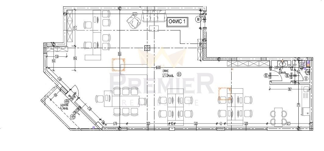 Офисът е на 3 етаж и разполага с площ от 173.86 кв.м. и височина от 3.30м, предоставяйки светло, функционално и ефективно работно пространство, подходящо както за представителство, така и за динамична офисна дейност.