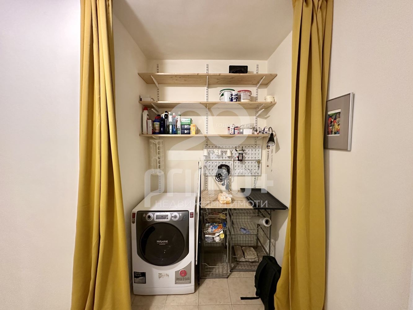 Имотът е напълно обзаведен, като предлага всички необходими електроуреди - включително миялна машина и пералня със сушилня. Просторните помещения и добре организираното разпределение правят апартамента изключително удобен както за семейство, така и за работещи професионалисти. Допълнително удобство е обособеният работен кът във втората спалня, оформен в усвоена тераса, идеално решение за home office среда.