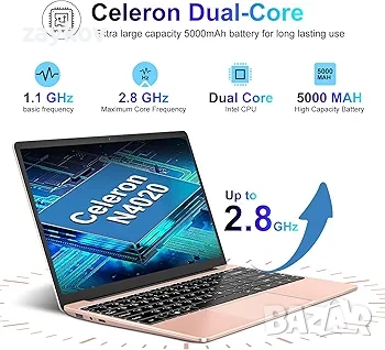 【МОЩНА ПРОИЗВОДИТЕЛНОСТ】Този 14-инчов лаптоп с Windows 10 е оборудван с двуядрен процесор Celeron N4020, който осигурява несравнима скорост. Работете с множество приложения, раздели на браузъра и видеоклипове плавно, осигурявайки по-бърза многозадачност и завладяващо забавление, работа и учене