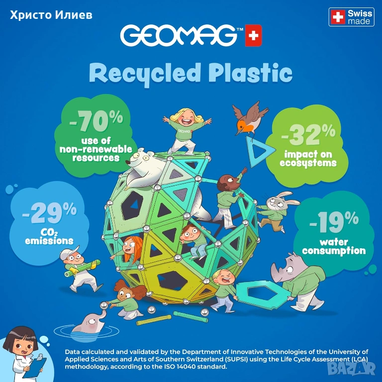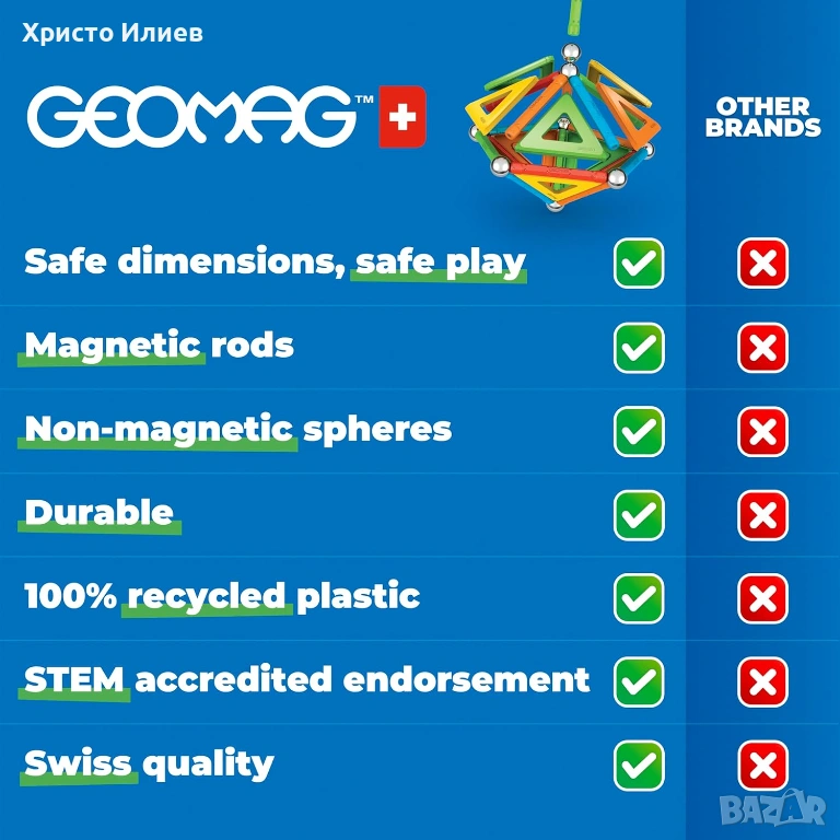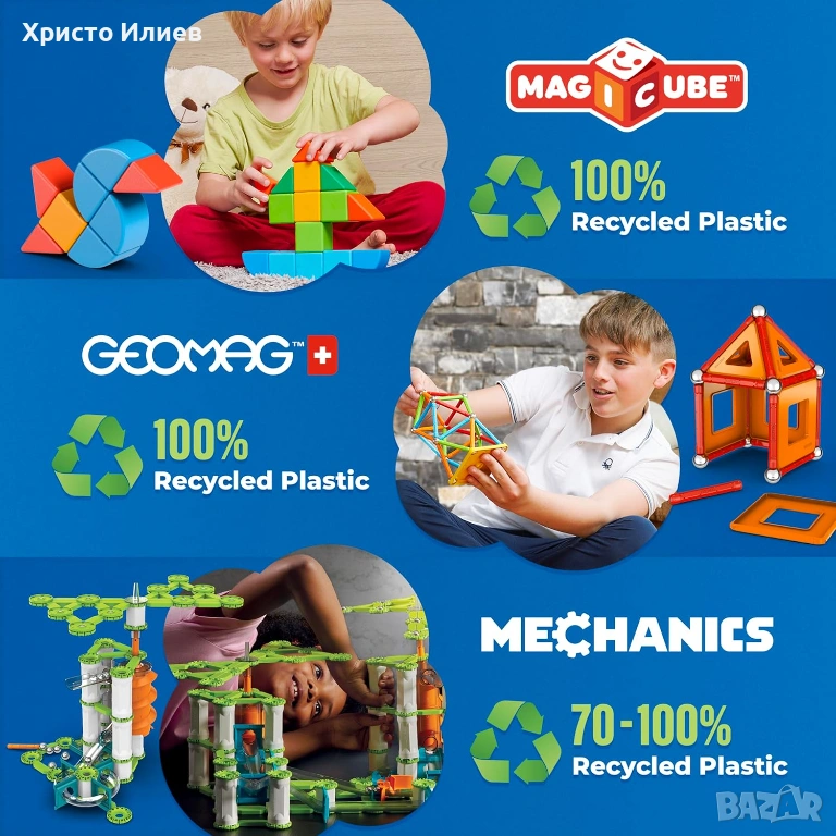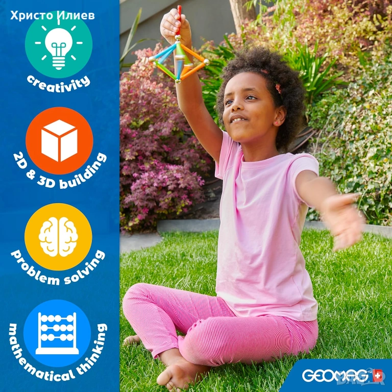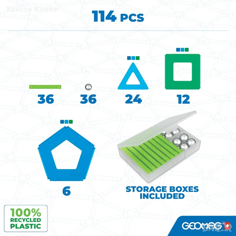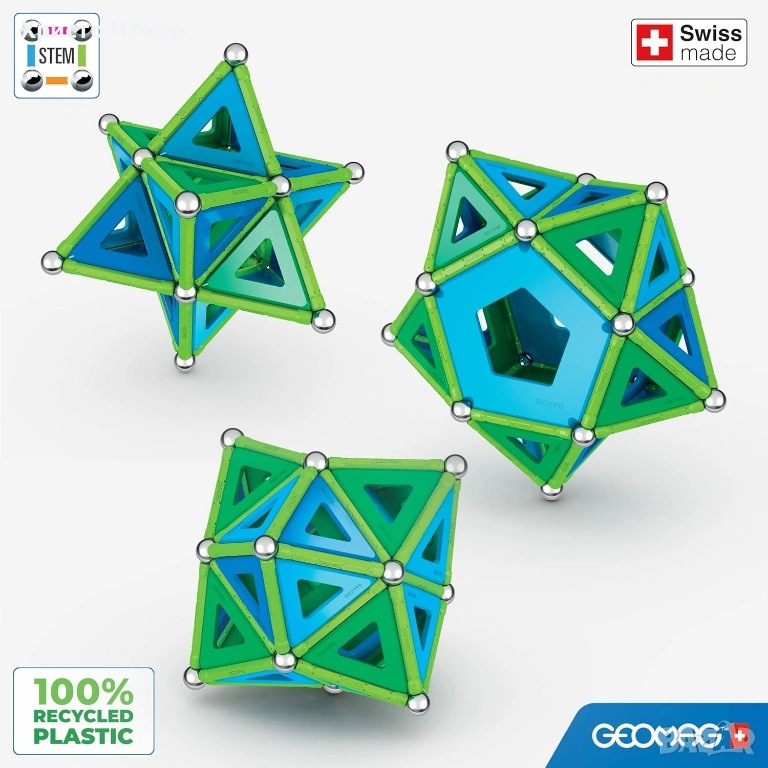 Магнитен конструктор Geomag Classic Panels Recycled – 114 части е иновативна образователна играчка, предназначена да стимулира пространственото мислене, креативността и интереса към науката, технологиите, инженерството и математиката (STEM). Създаден за малки изобретатели, комплектът предлага безброй възможности за изграждане на фигури и конструкции с помощта на магнитни пръчки, метални топчета и цветни панели.