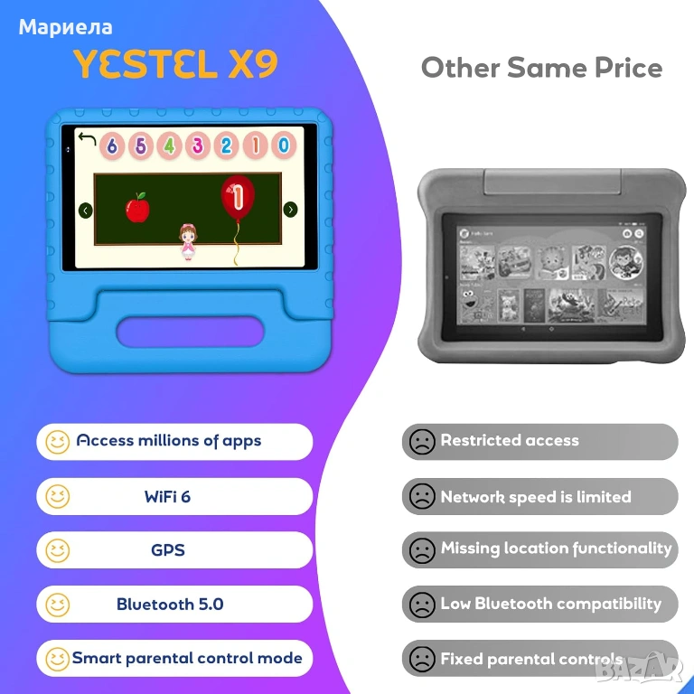 Детски таблет YESTEL с Wi-Fi 6, Android 13, 7GB RAM