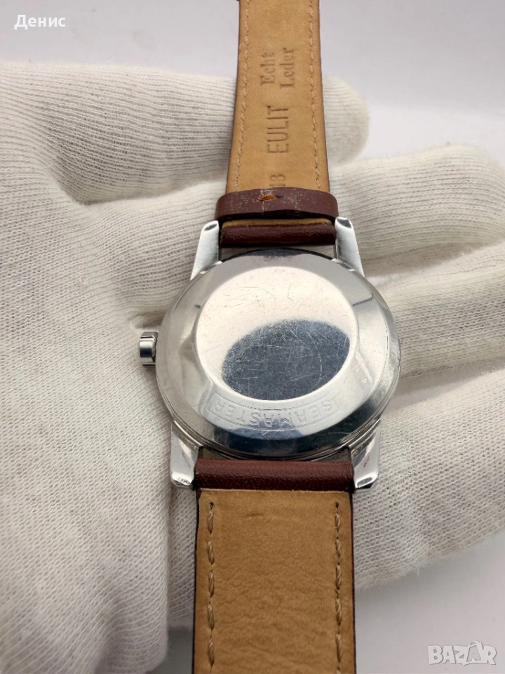 Часовникът е с оригинален циферблат с красива естествена патина, златисти индекси и стрелки, централна секунда и класическа Seamaster визия. Касата е стоманена и запазена, с нормални следи от употреба. Механизмът е оригинален и работи отлично.