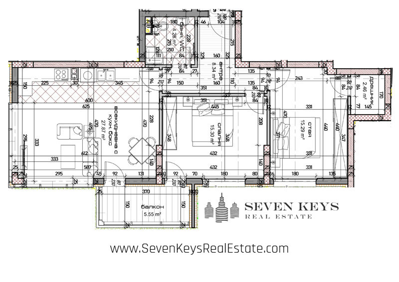 🛋️ Дневна с кухненски бокс 27.87 кв.м.