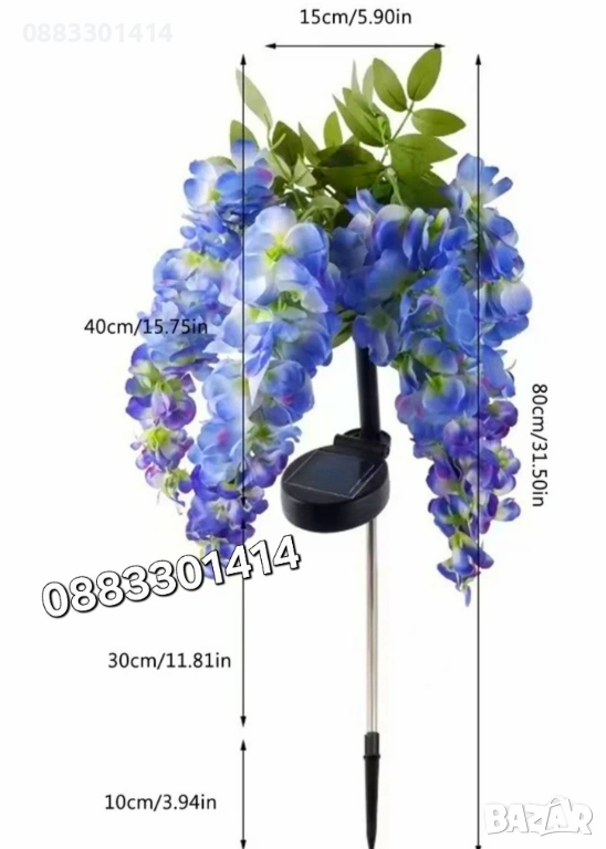 Соларна лампа Глициния Градинско осветление Декорация 80см