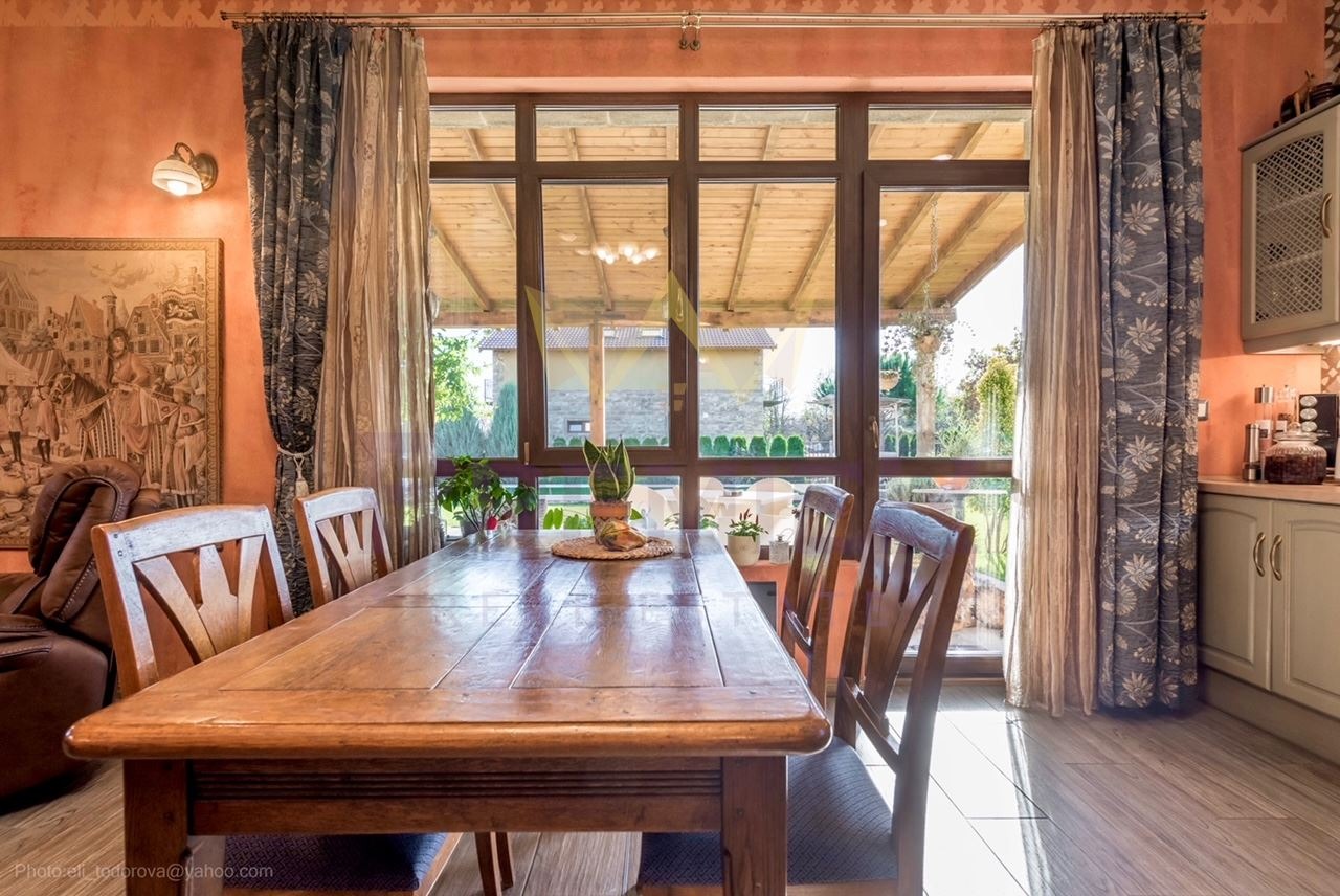 Насладете се на открито: Представете си сутрешното си кафе на просторната веранда с изглед към собствения ви рай. В центъра на великолепно озеленения двор ви очаква 9-метров басейн, който обещава безкрайни летни забавления и релакс под слънчевите лъчи.