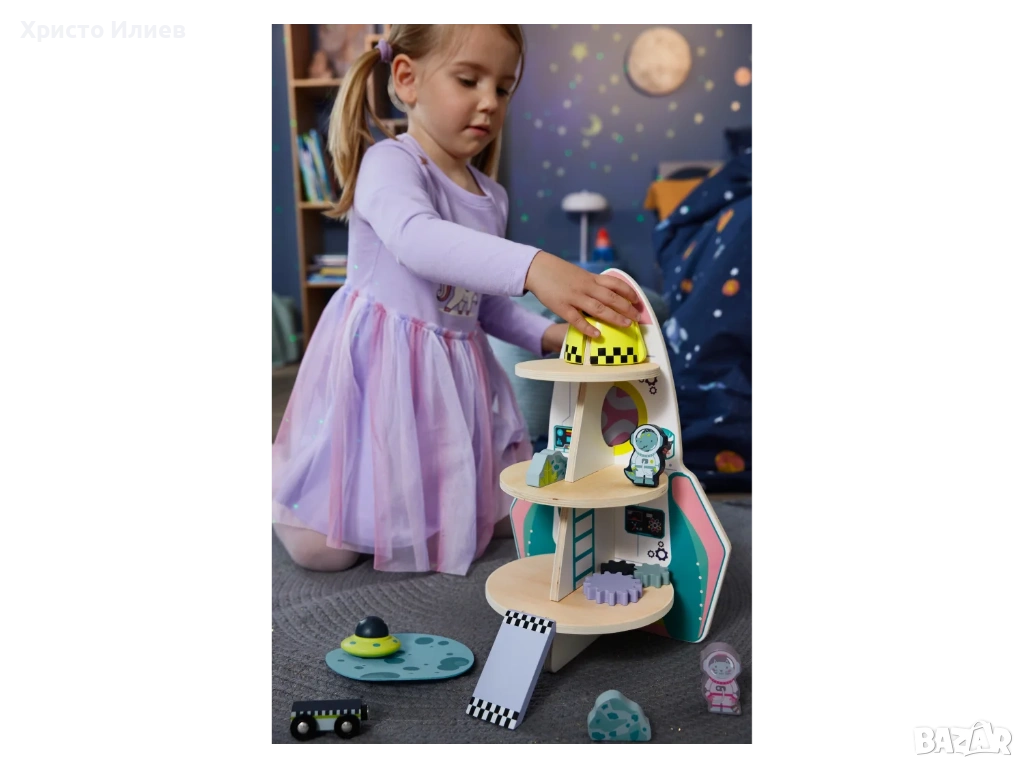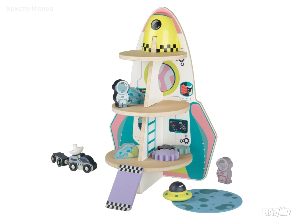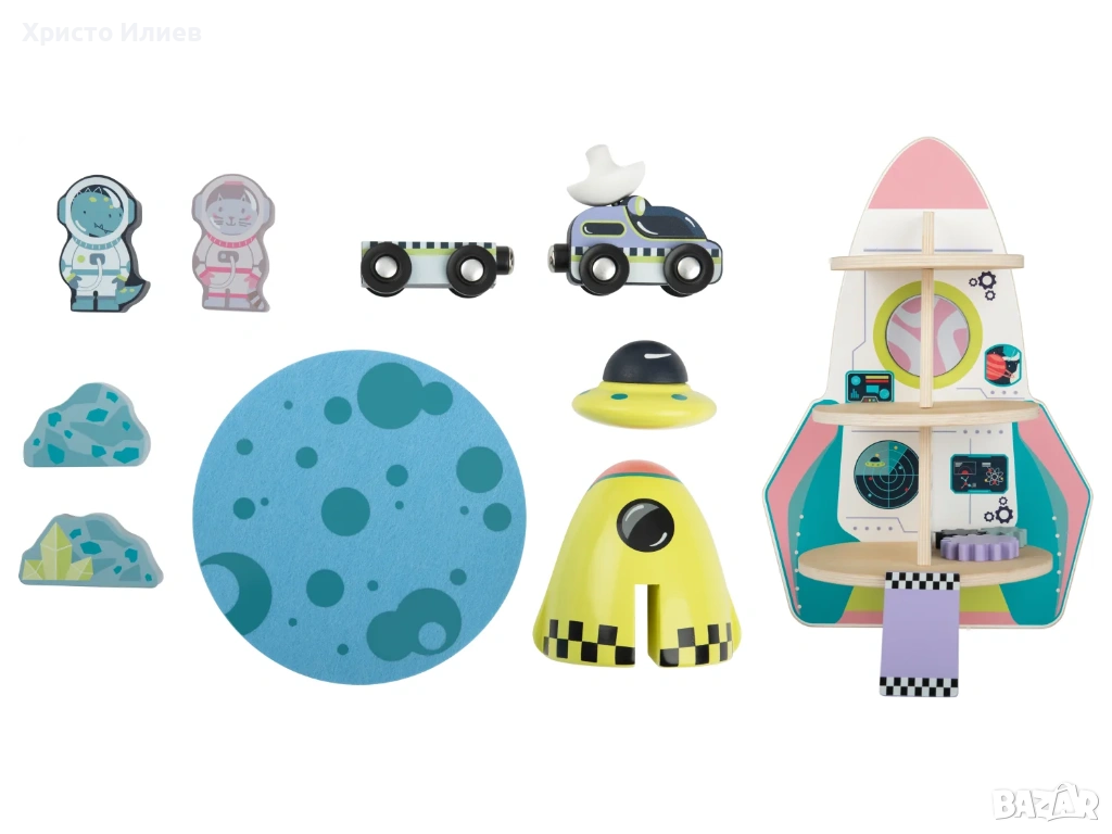 Общо: приблизително 25,6 x 25 x 38 см (Д x Ш x В); Кола 1: приблизително 7,2 x 3,2 x 6,2 см (Д x Ш x В); Кола 2: приблизително 6,4 x 2,9 x 2,1 см (Д x Ш x В); Фигурки: приблизително 5,6 x 3,3 x 1,5 см (Д x Ш x В); Мини космически кораб: приблизително 6 x 3,5 см (Ø x В); Основа: приблизително Ø 14 см; Метеорит 1: приблизително 5,7 x 2,9 x 1,5 см (Д x Ш x В); Метеорит 2: приблизително 5 x 3,4 x 1,5 см (Д x Ш x В)