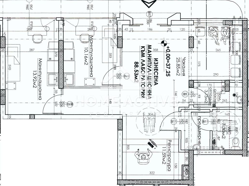 ХОУМ АКТИВ недвижими имоти , предлага под наем помещение със статут ИЗНЕСЕНА МАНИПУЛАЦИОННА КЪМ ЛАБОРАТОРИЯ, разположена на партерен етаж срещу МБАЛ 'Сърце и мозък', кв. Мадика, гр. Бургас. Партерният и първи етаж на сградата се състоят от медицински център, дентален център, аптека и супермаркет.
