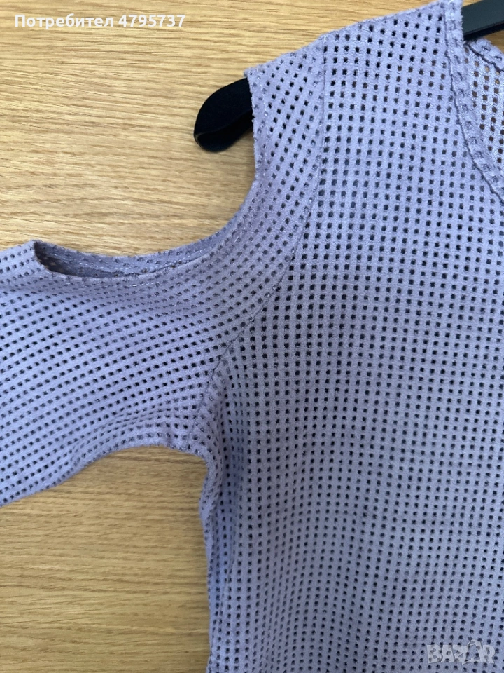 Имитация на перфориран велур. С интересни ръкави, изрязани в горната част. Има еластичност.