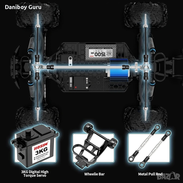 Hosim бърза кола с дистанционно управление за момче, 4x4 високоскоростен Rc камион за всякакви терени офроуд Rc бъги водоустойчива голяма състезателна играчка за хоби клас подарък Monster Truck