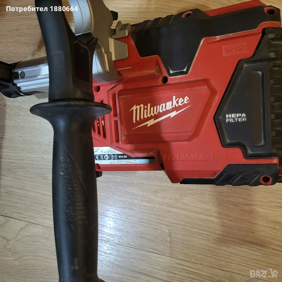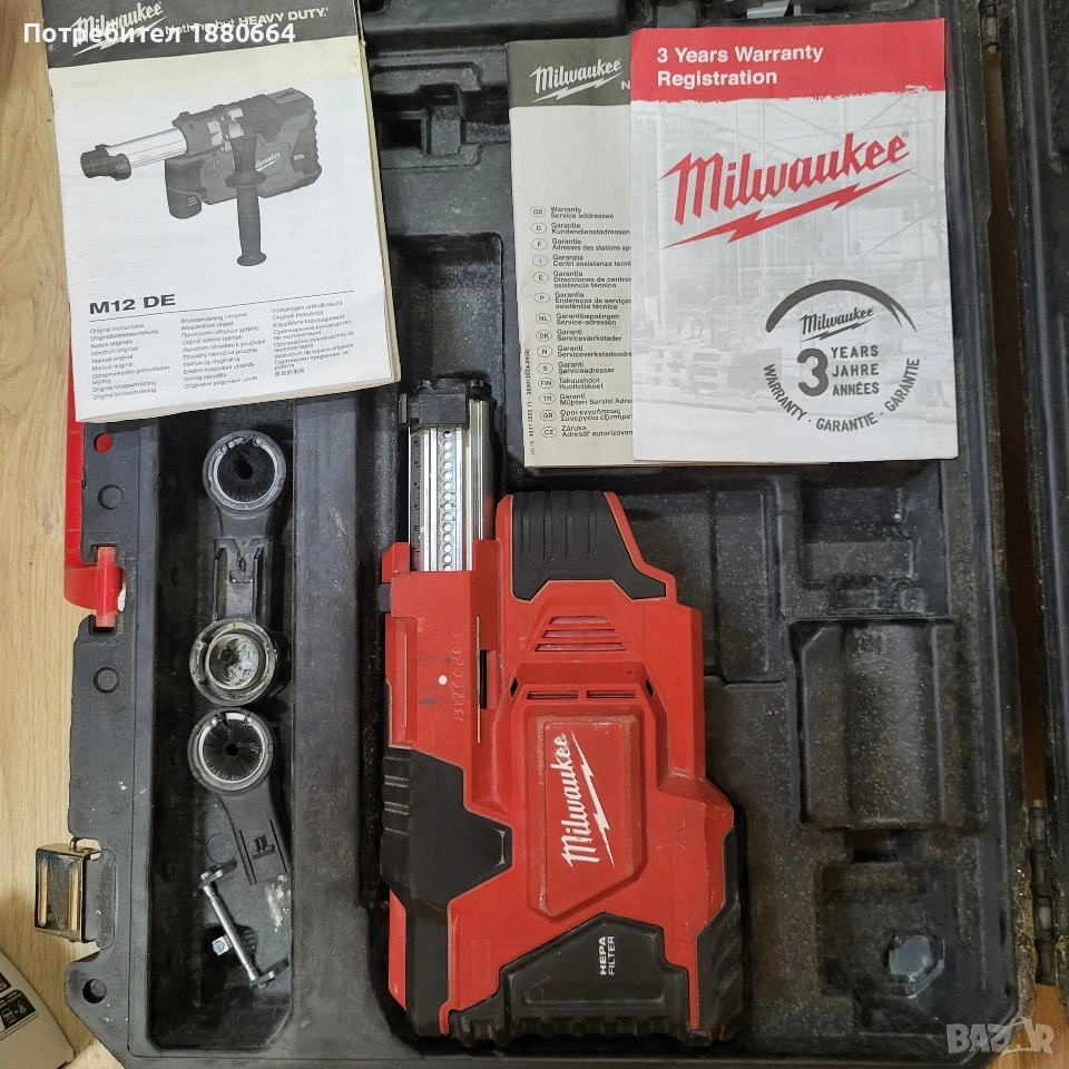 Прахосмукачка за перфоратор с шийка от 43 до 59 мм диаметър. Машинката работи с 12 волтови батерии на MILWAUKEE. Модела е