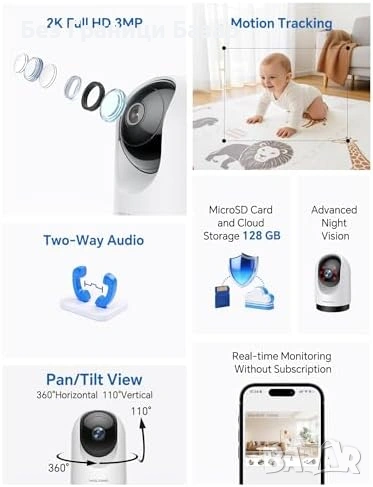 Нова WOLFANG вътрешна камера 360° 2K 3MP Alexa Google 2 броя комплект за дом охрана