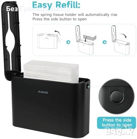 Нов Диспенсър за хартиени кърпи салфетки Z Fold 200+ листа Плотен черен