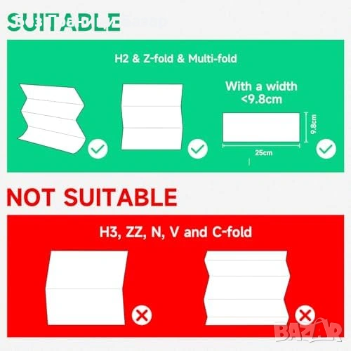 Подходящ за Z-fold и multifold кърпи с ширина в сгънато състояние до 9.8 см