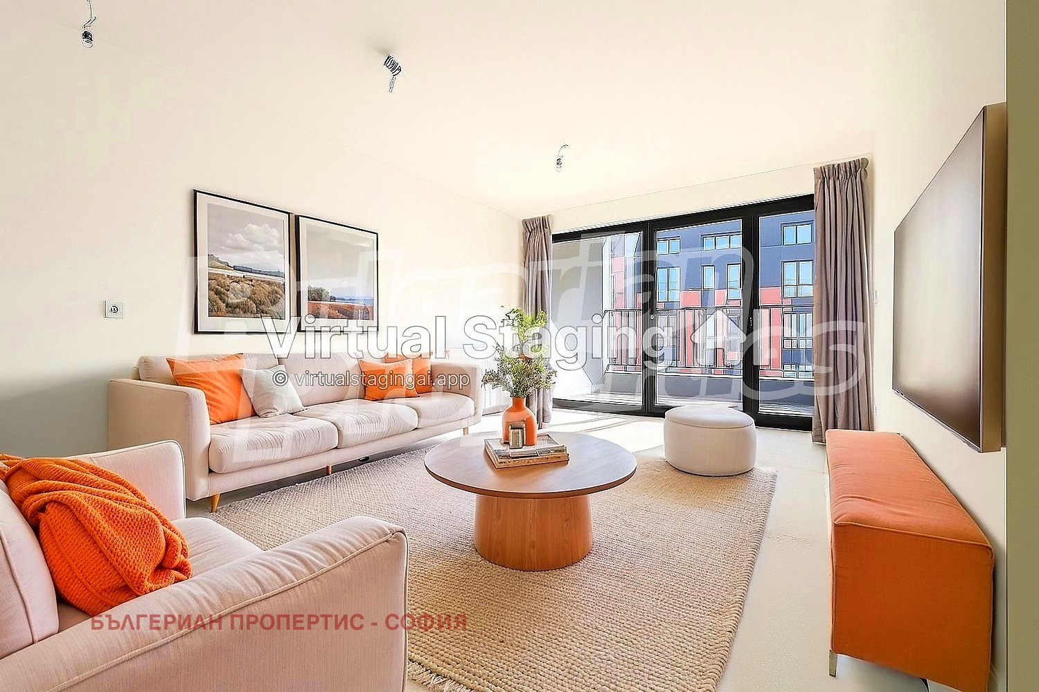 просторна дневна с място за кухненски бокс и излаз към тераса