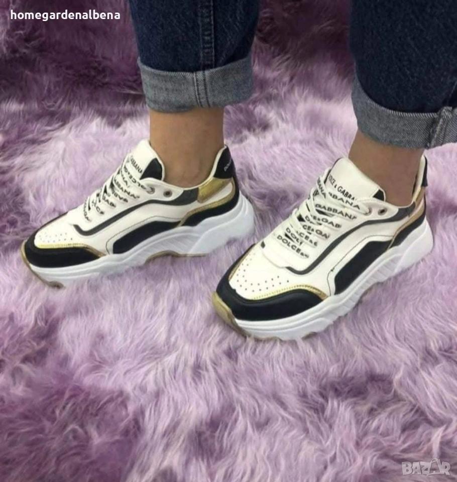 Ключови думи: дамски маратонки, платформа, бели маратонки, златни акценти, еко кожа, спортни обувки, Home & Garden by Albena