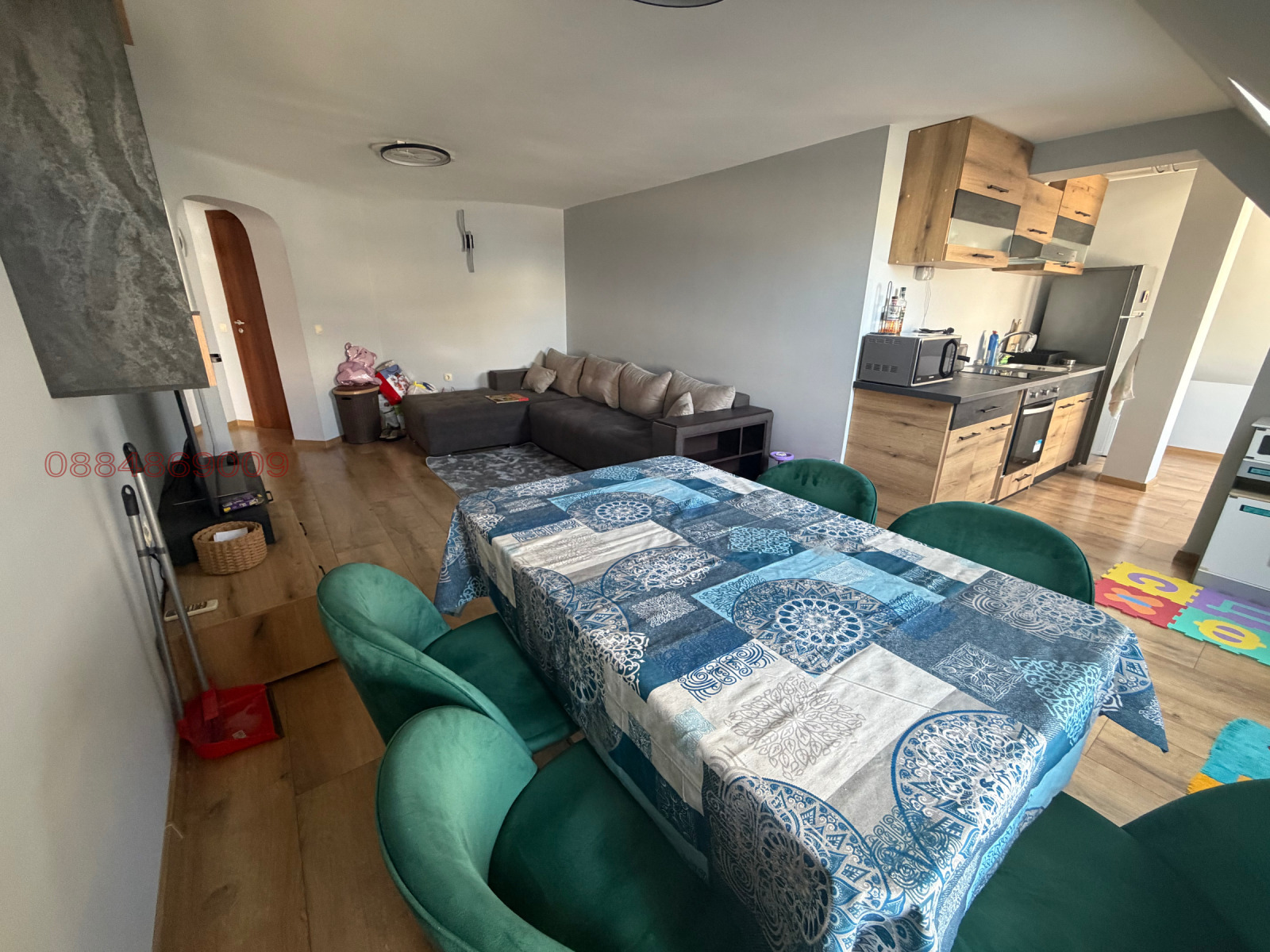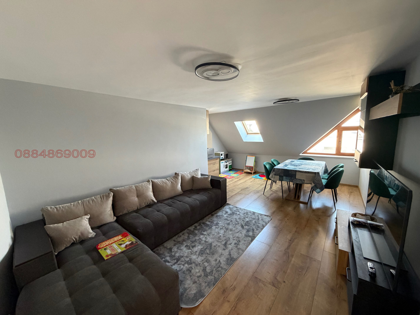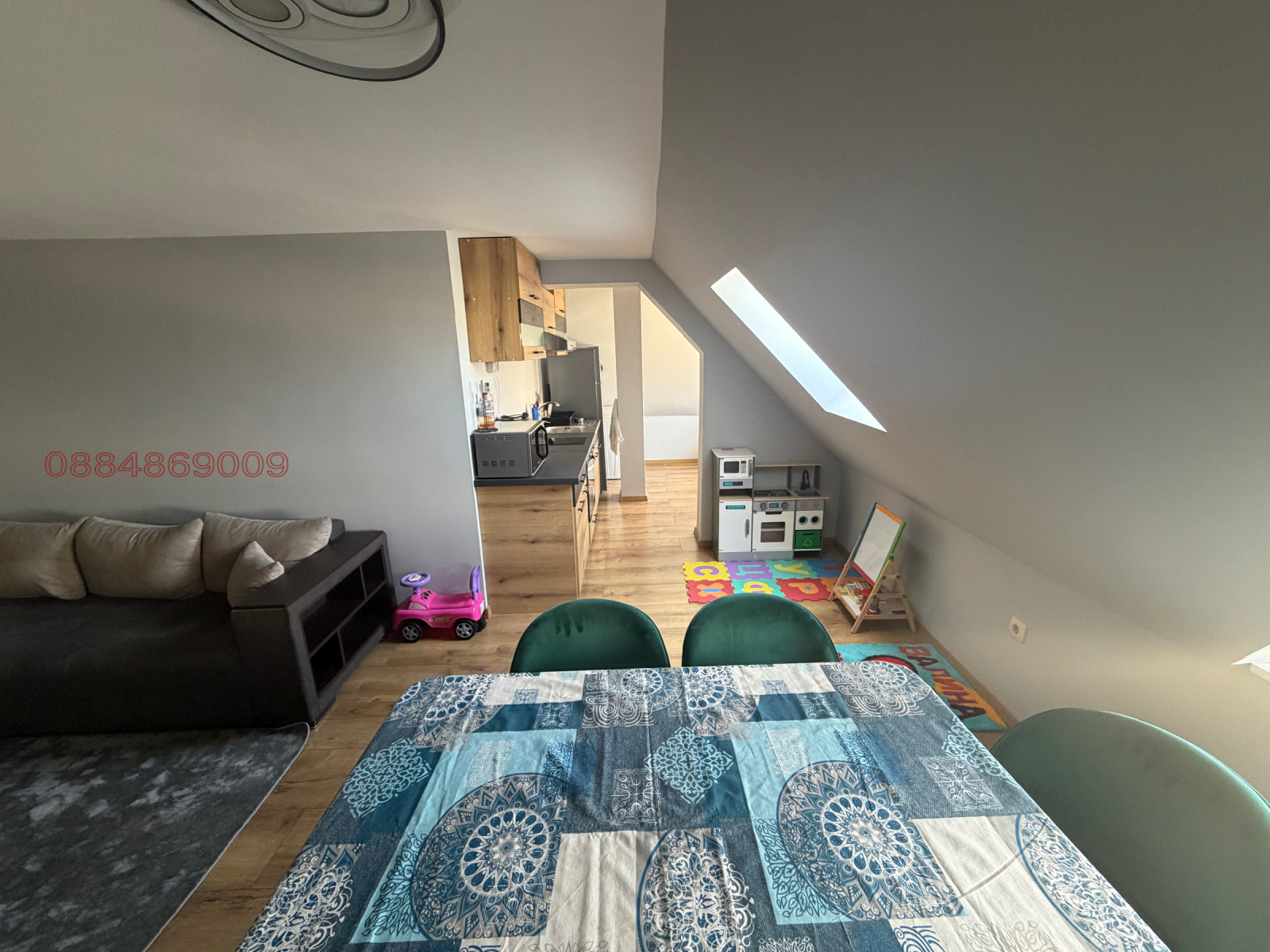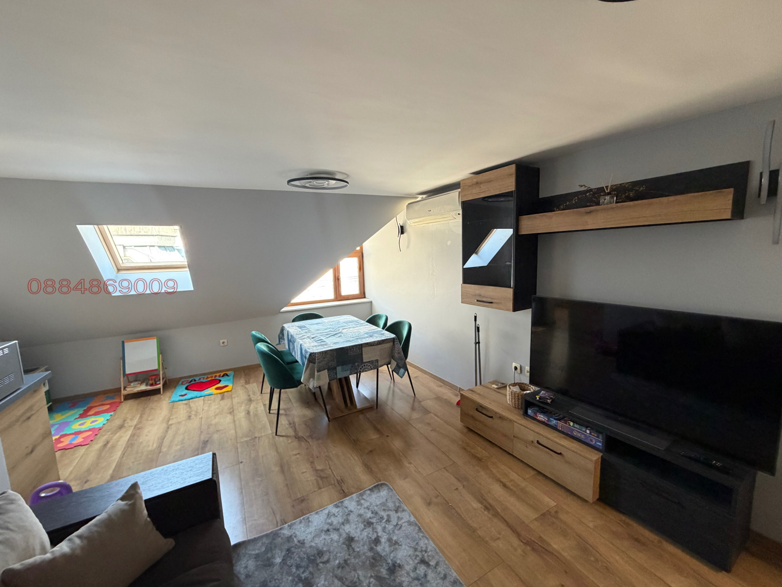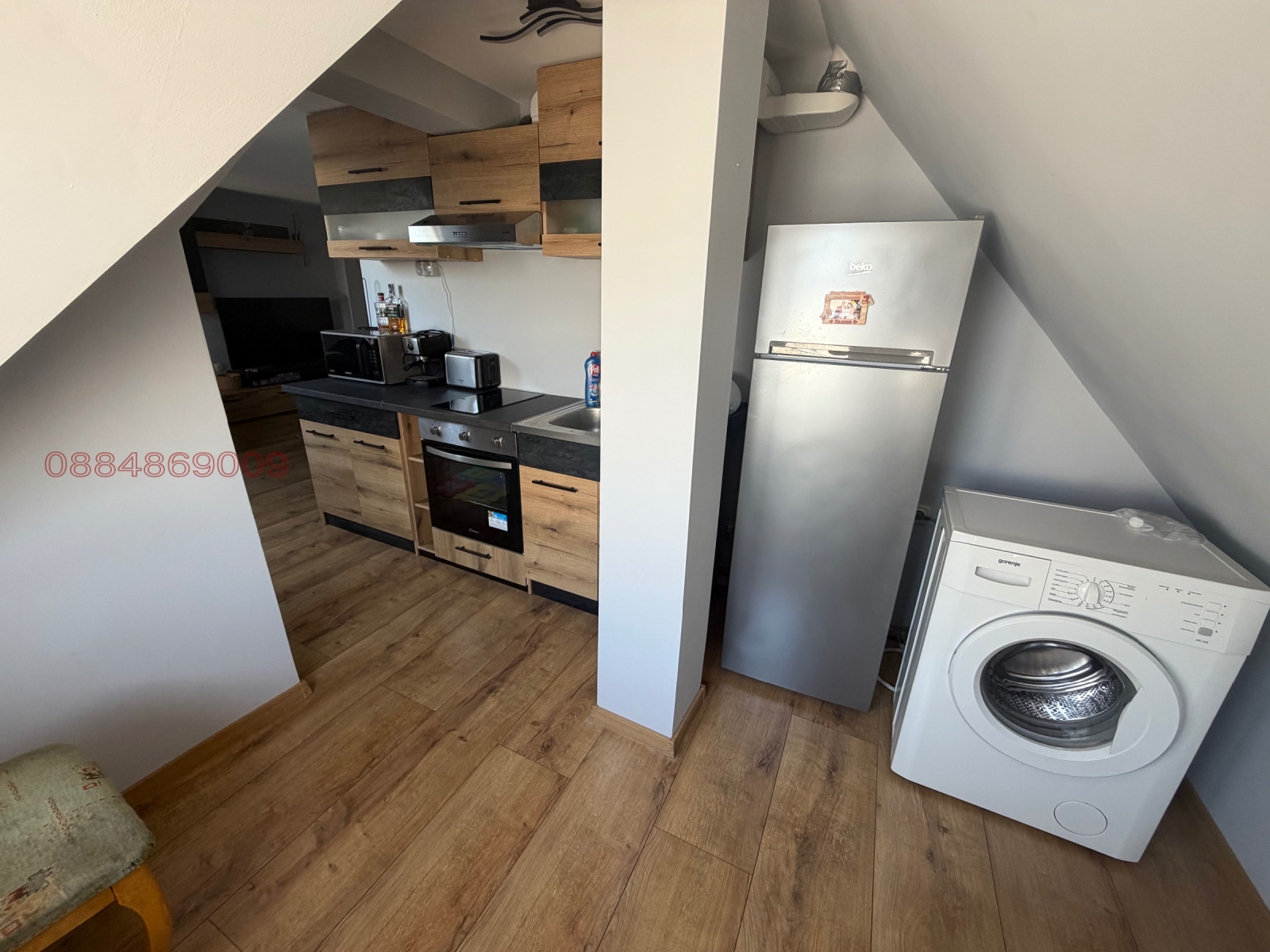 Кухня с трапезария (общо помещение), спалня, баня и тоалетна (отделно) . Отоплението е на Климатик