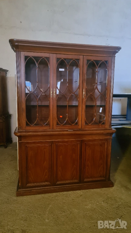 Продавам изключително стилен и запазен масивен бюфет, който ще внесе аристократичен дух във Вашата трапезария или хол. Мебелта се отличава с прецизна изработка и уникални детайли на стъклените врати.