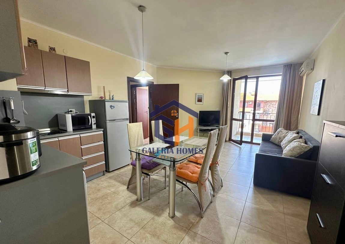 Галерия Имоти Ви предлага за продажба обзаведен тристаен апартамент в к-с Аполон, Равда. Комплексът се намира на 200 метра от плажа и на 300 метра от аквапарк Парадайс .