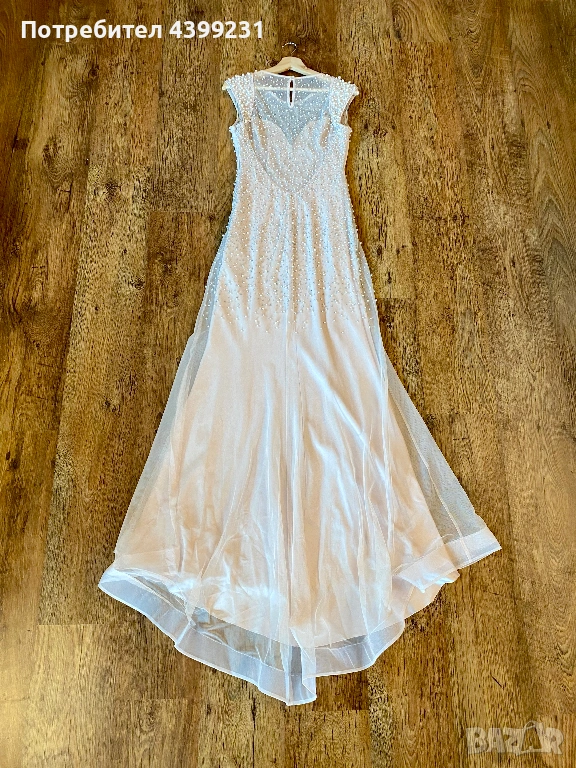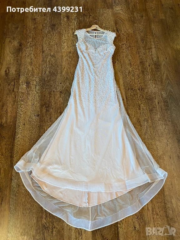 Детайли: Ръчна декорация с перли и кристали, ефирна материя, елегантен шлейф