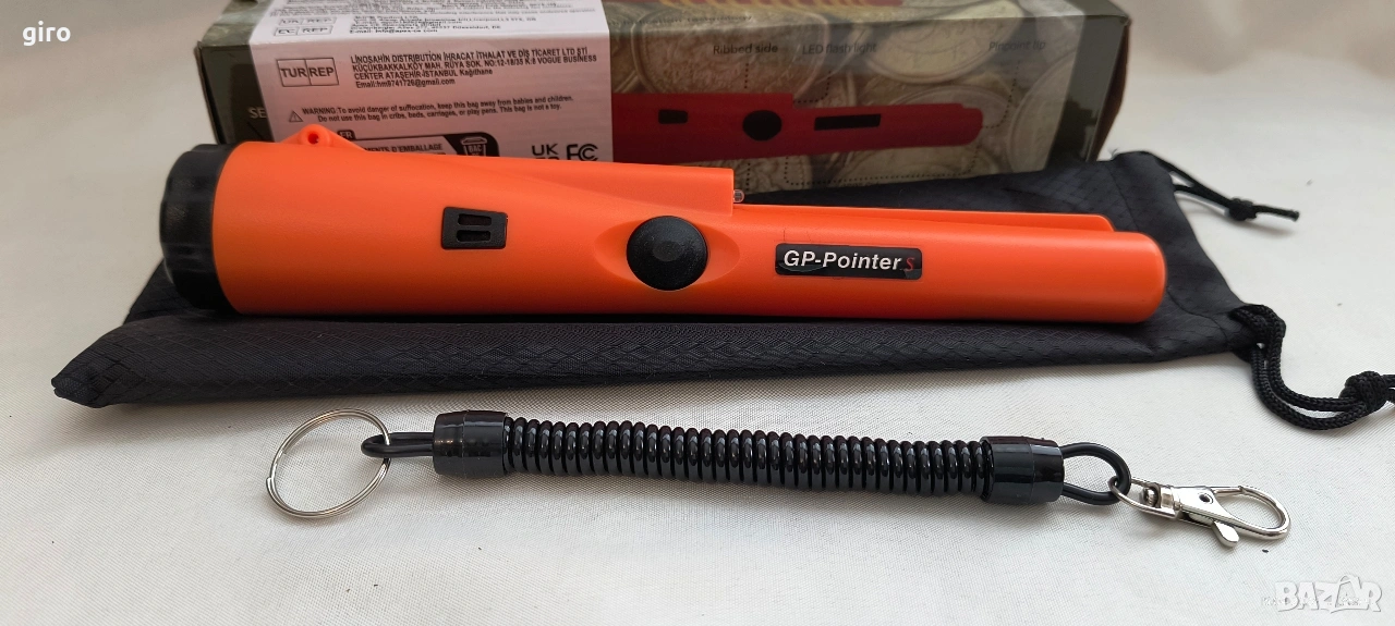 С този металдетектор Металотърсач GP Pointer пинпоинтер можете да търсите монети, бижута, злато и сребро навсякъде, включително тревни площи, сняг, планини и др. Ръчен, малък и лек, с прецизно проследяване, водоустойчив IP68. С точков връх, възможност за 360° сканиране и LED фенерче. Той е идеален за търсене на малки предмети в различни природни условия. Със звукови и статични аларми, които показват наличието на метални предмети. Алармите се увеличават по интензивност, когато оборудването се приближи до металната цел. Той е с високо качество и е издръжлив за употреба. Честота: 3.1Khz Спецификации на продукта: Индикация за аларма: звук и вибрация се появяват едновременно Чувствителност: около ≥ 5 см (за RMB, монета от един юан) Захранване: 9 V батерия (6F22ND) Размер на тялото: 23,2 x 3,8 x 2,6 см Нетно тегло: 160 г Бруто тегло: 220 г