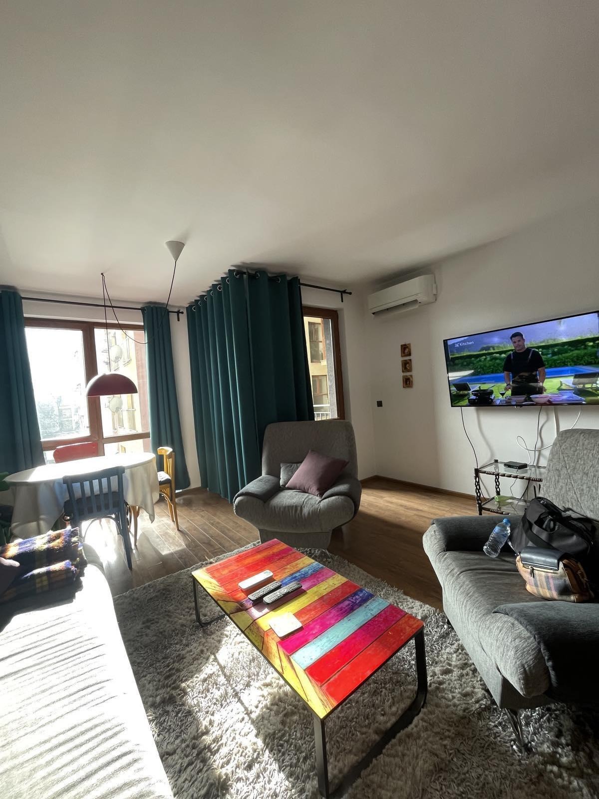 Месечният наем е 650 EUR. Имотът се отличава с модерно изпълнение и директна връзка с градския транспорт.