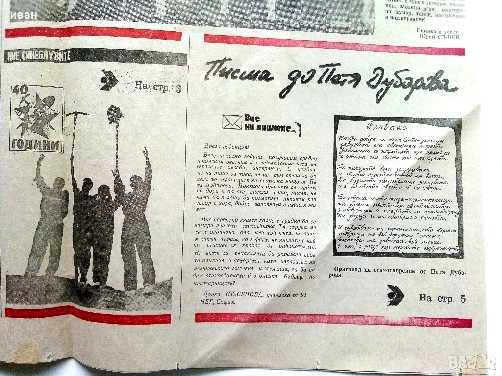 Вестник "Средношколско знаме" - 27 май 1986г. → Обява 54203395