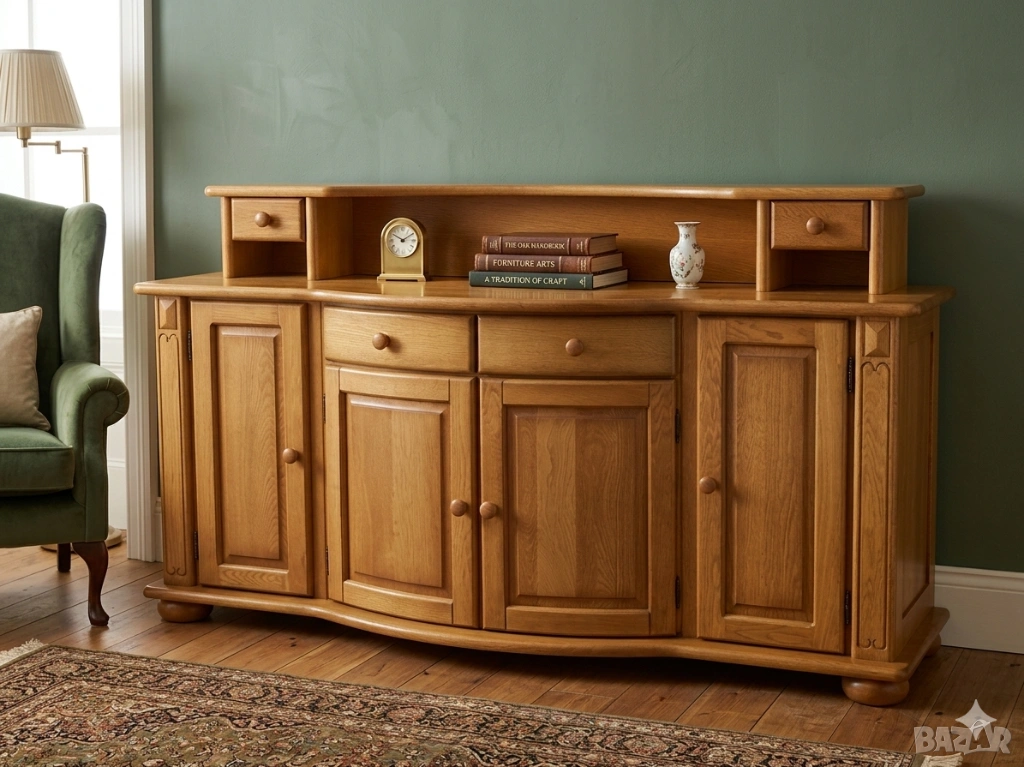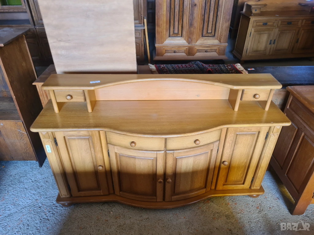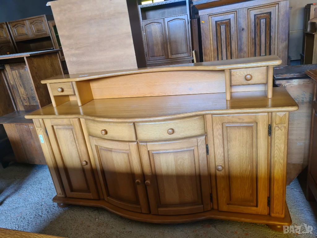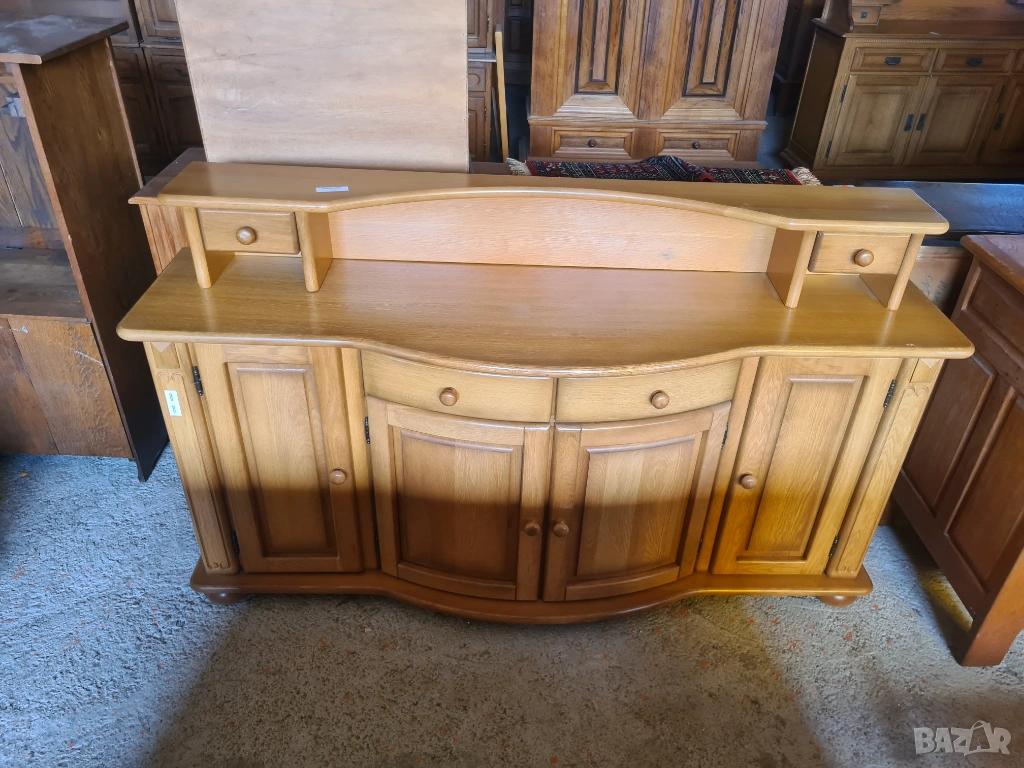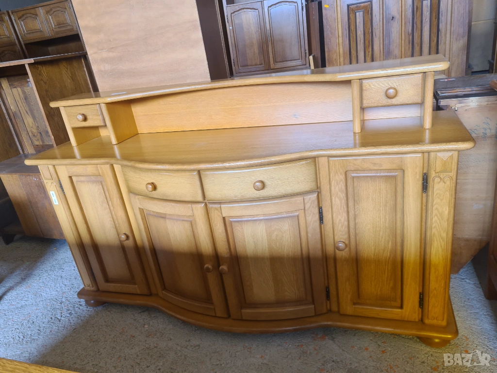 Преобразете интериора си с този великолепен масивен бюфет. Нейният класически дизайн, съчетан с топъл дървесен тон и уникален извит плот, ще добави уют и стил на всяко пространство.