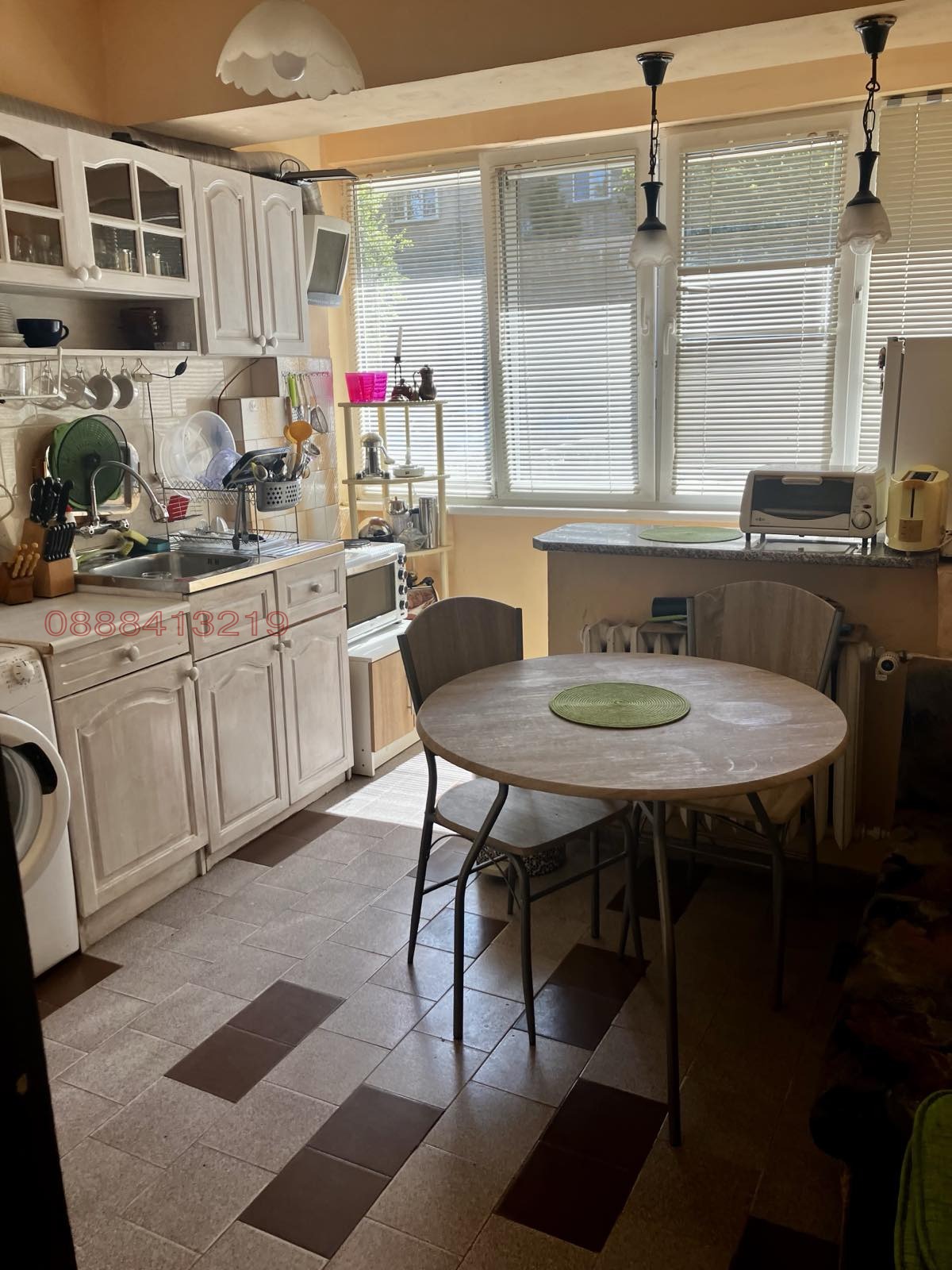 Обзавеждане: напълно обзаведен с всички кухненски уреди - пералня, съдомиялна, хладилник с фризер, малка готварска печка, кафе машина