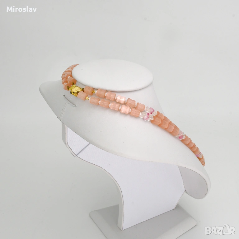 Колие - розов кварц - автентично от 1970г. → Обява 54203448