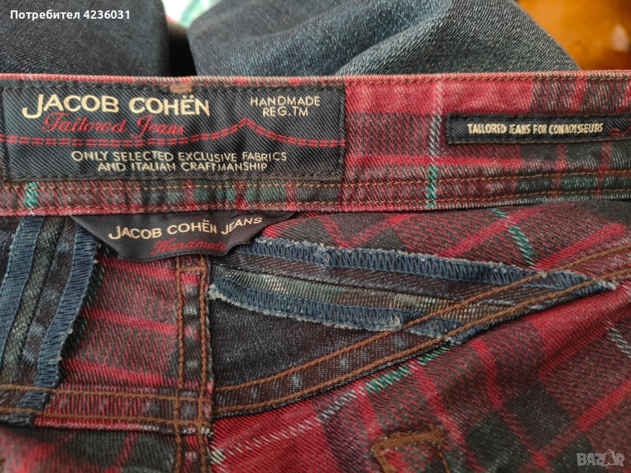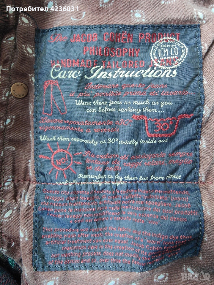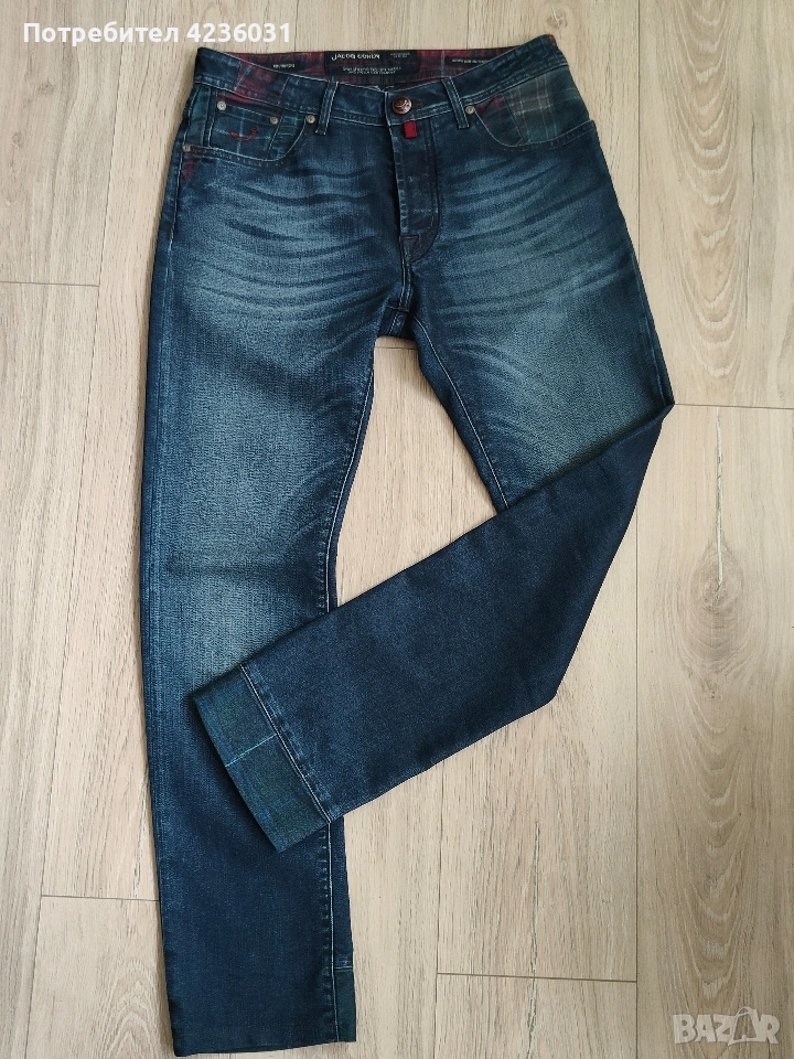 Оригинални мъжки дънки Jacob Cohën. Second premium edition. Ръчно шити в Италия. Неразличими от нови. Размер 32 талия 42см, дължина 105см, ширина на крачола под четала 26см.