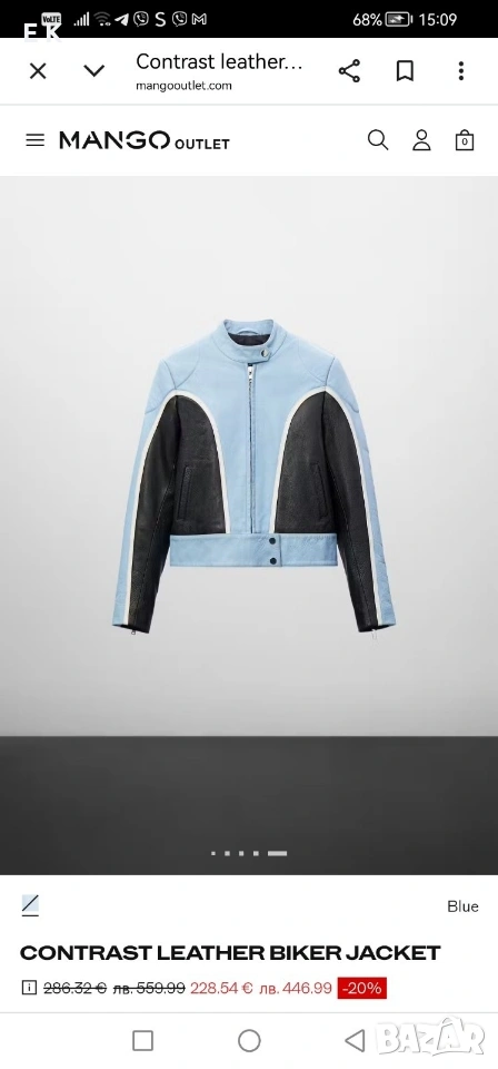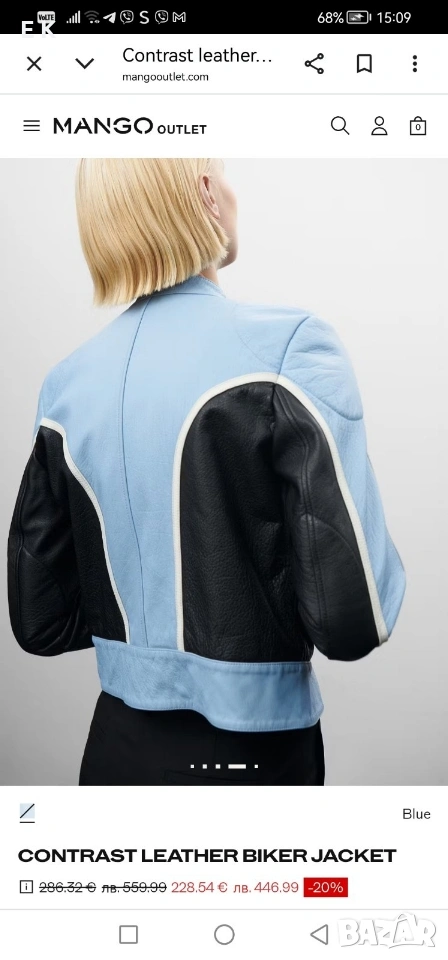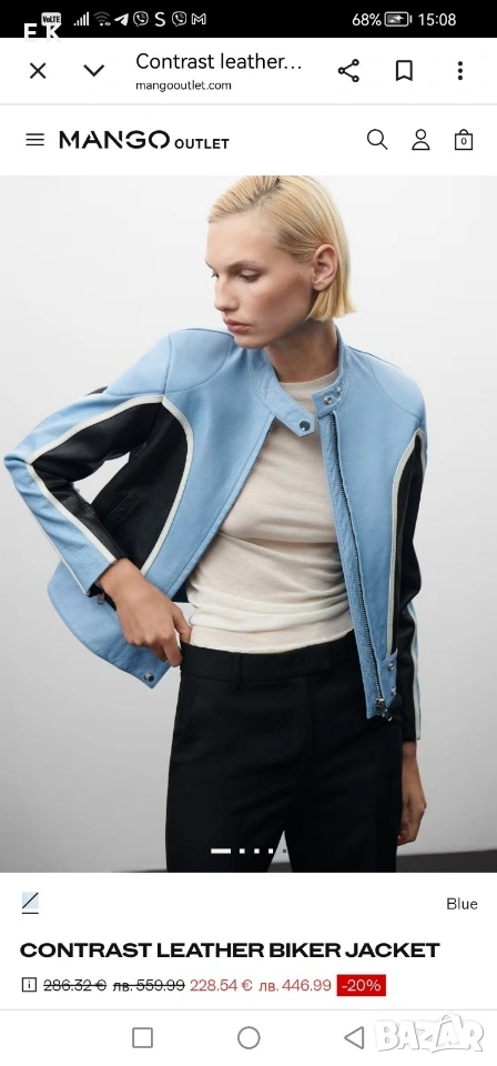 Mango дамско кожено яке 100% естествена говежда кожа в размер М, чисто ново неносено, само етикета е свален.