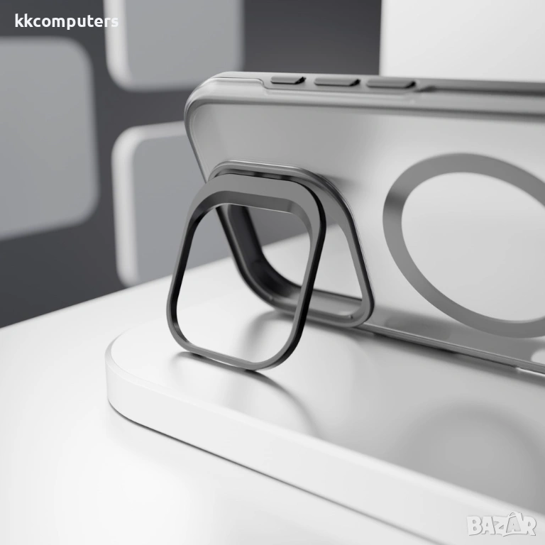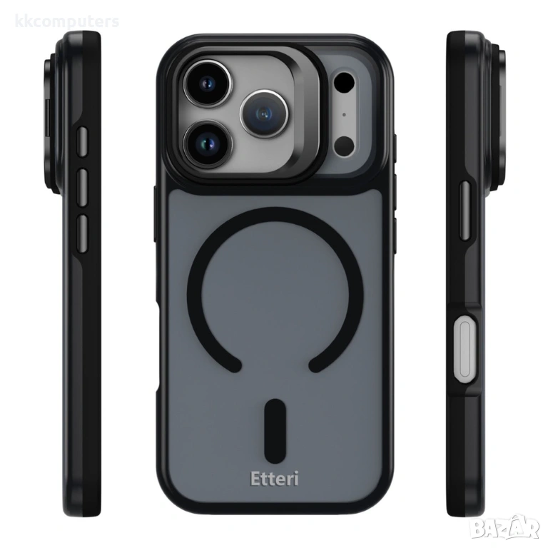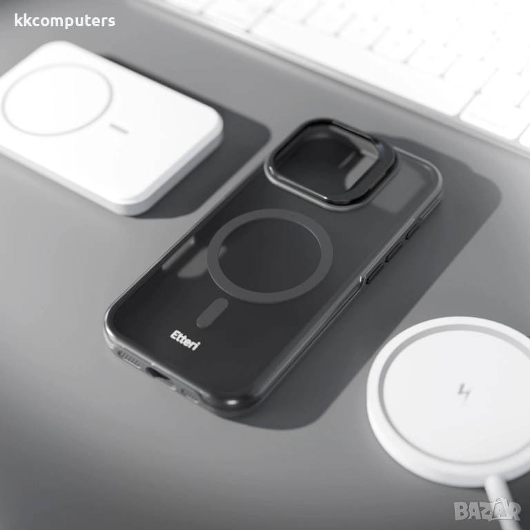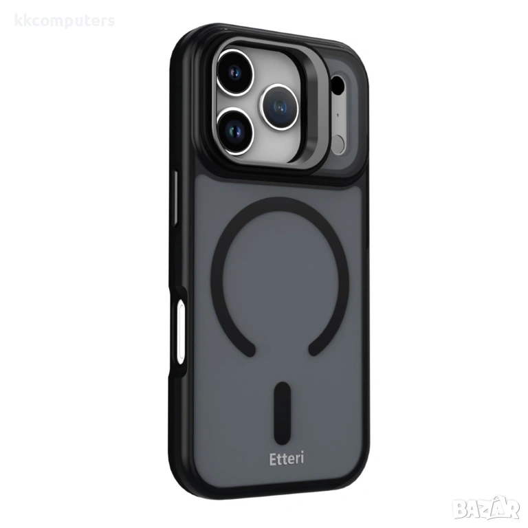 Кейс Etteri Morning Fog с Magsafe и стойка, За iPhone 17 Pro Max (6.9), Черен и Протектор