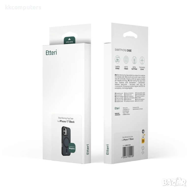 Etteri Morning Fog е тънък и издръжлив кейс с дебелина само 2 мм, изработен от комбинация от TPU и поликарбонат за надеждна защита и стабилен захват. Вграденият мощен магнит осигурява пълна съвместимост с MagSafe аксесоари и безжично зареждане. Металният остров за камерата предпазва обективите и служи като практична стойка за удобно гледане на съдържание. Матовото покритие придава модерен и елегантен външен вид. Съвместим модел: iPhone 17 Pro Max (6.9)