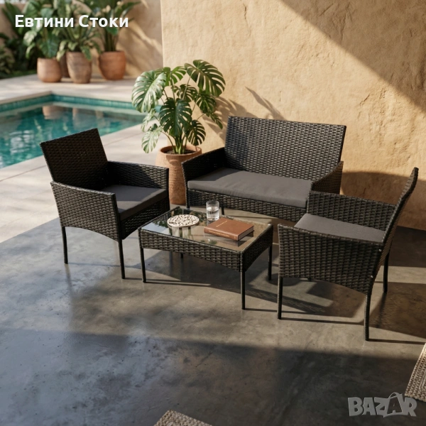 Елегантен ратанов комплект за градина, създаден за хора, които ценят комфорта и стилната външна среда. Идеален за отдих, семейни срещи и уютни вечери на терасата или двора.