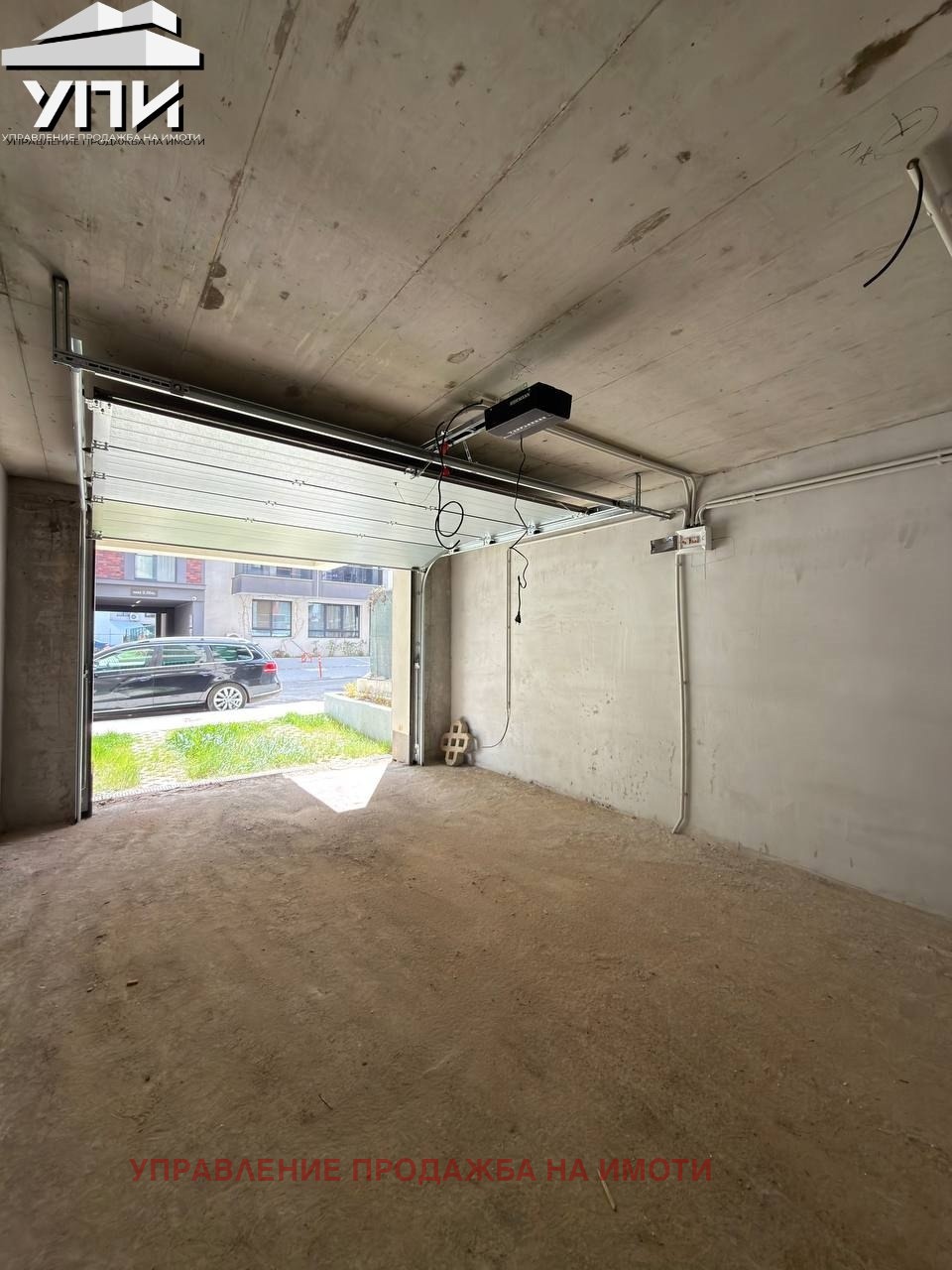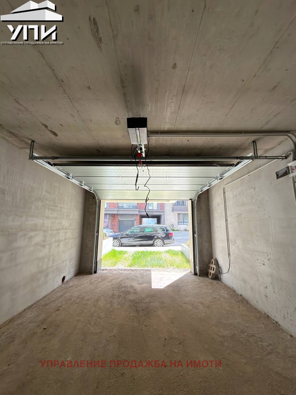 Гаражът е с ролетна врата с дистанционно управление и ключ, което осигурява удобство при ежедневна употреба и бърз достъп без необходимост от слизане от автомобила. Пространството е подходящо както за паркиране на автомобил, така и за допълнително съхранение.