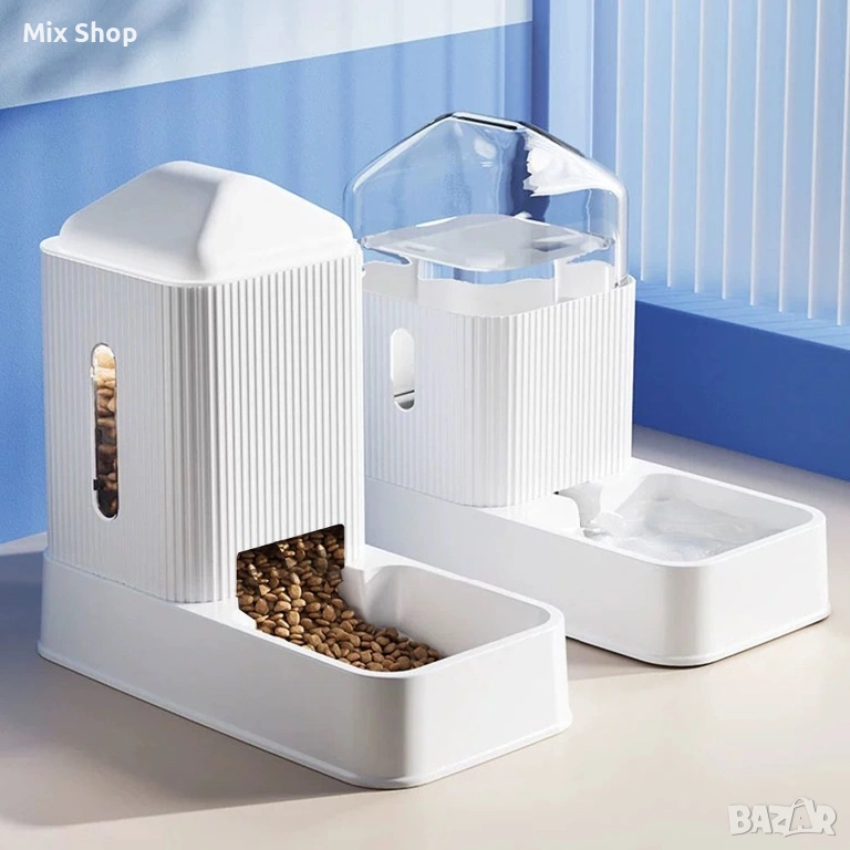 Нов Комплект автоматична хранилка за домашни любимци и фонтан за вода Gravity - бял